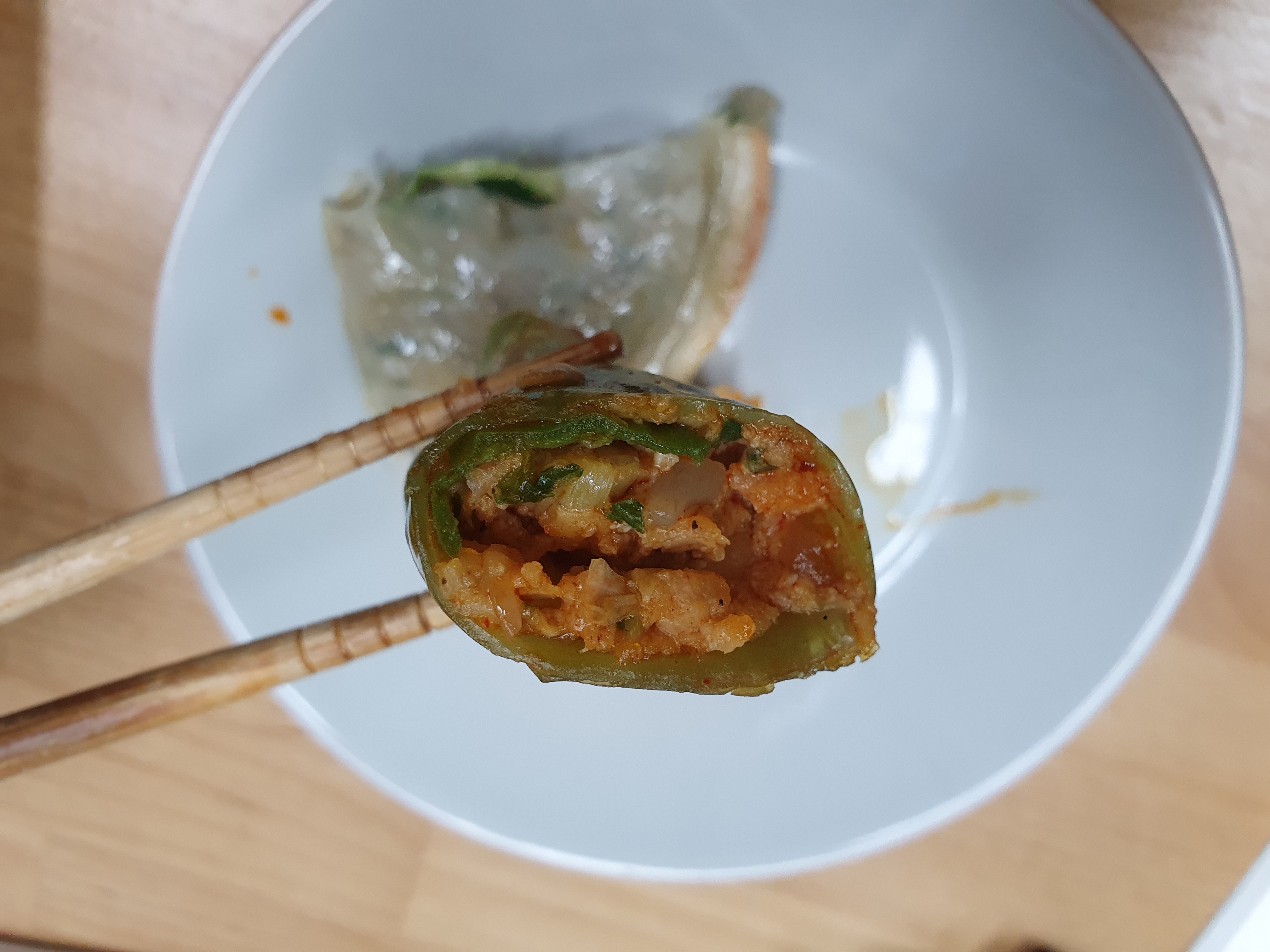 진짜 청양고추가 만두소 안에 들어가 있습니다.