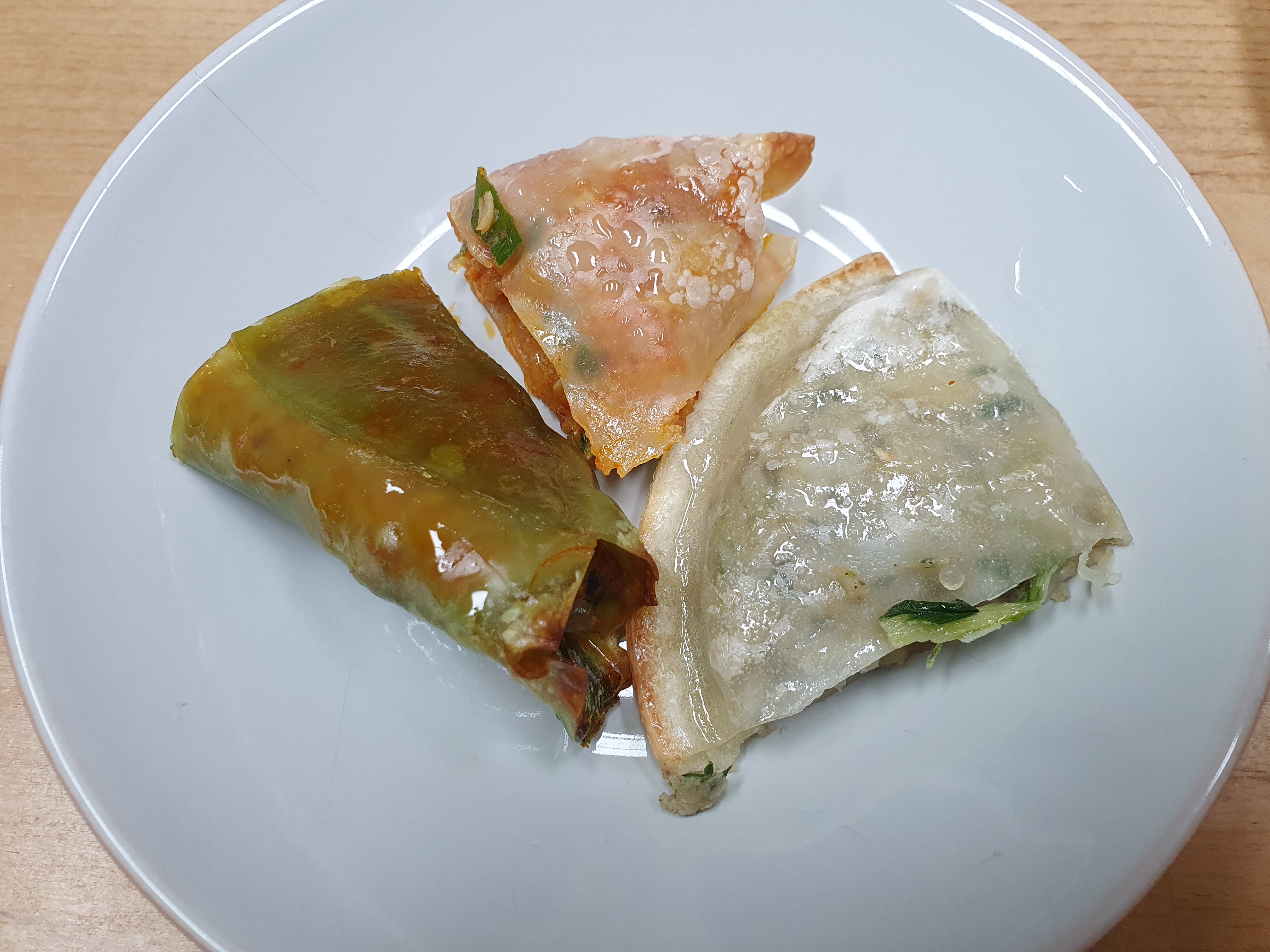 모둠 만두에는 여러 가지 만두가 포함되어 있는데요.