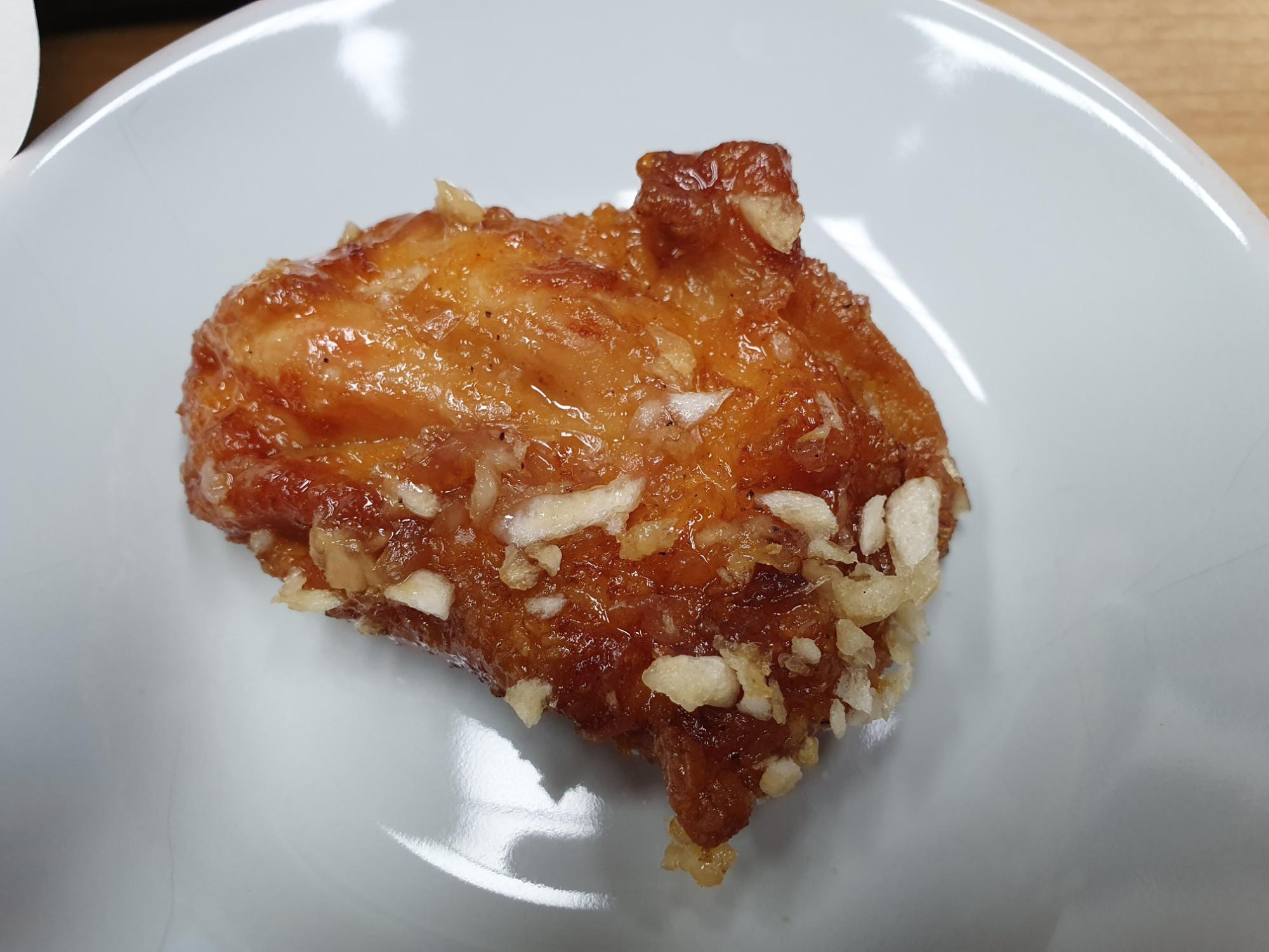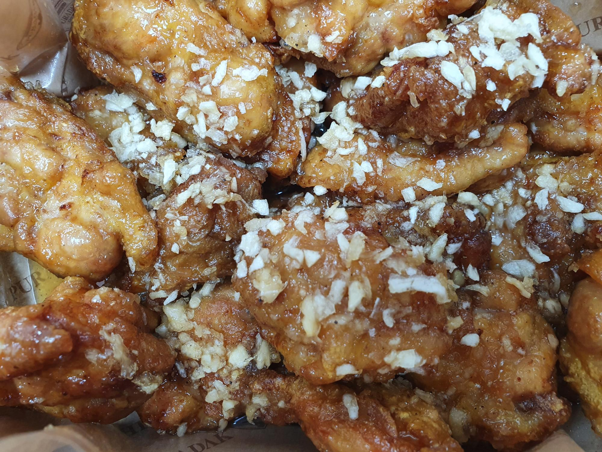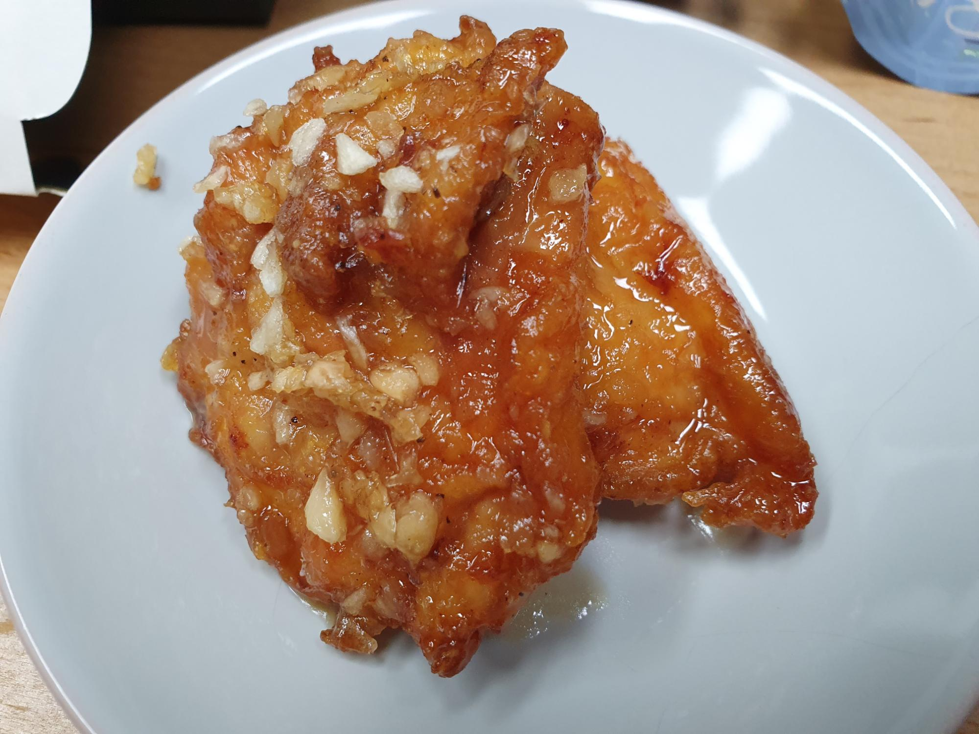 치킨 위에 다진 마늘이 올려져 있네요.