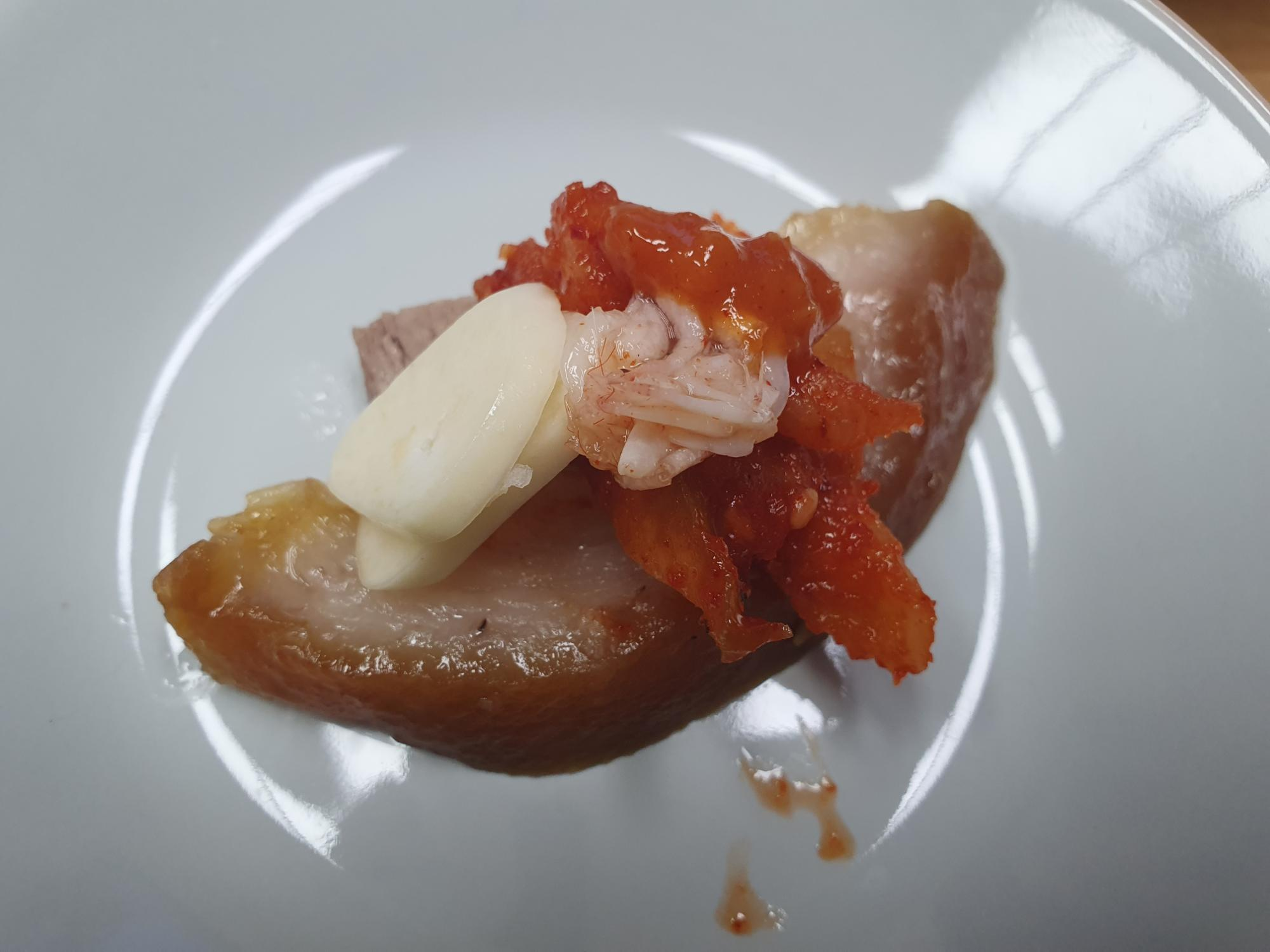 족발에 생마늘 쌈장 무김치 새우젓을 올려서 한입 먹으니 입에서 살살 녹네요 ㅎㅎ
