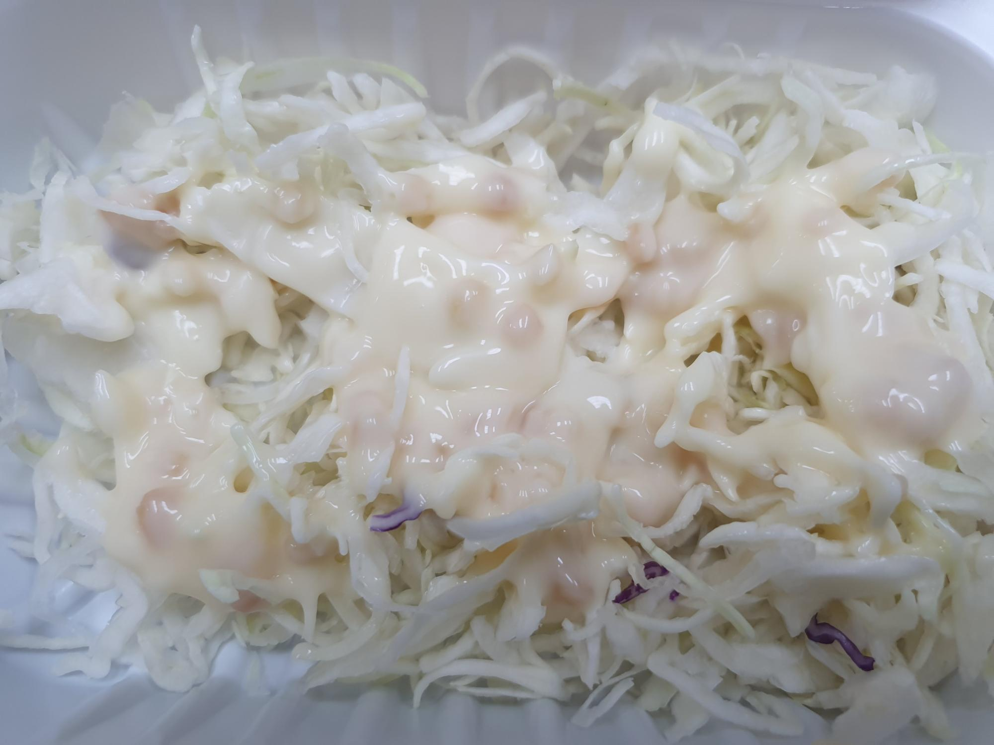 양배추 샐러드 소스는 마요네즈 + 땅콩이 들어가 있습니다.