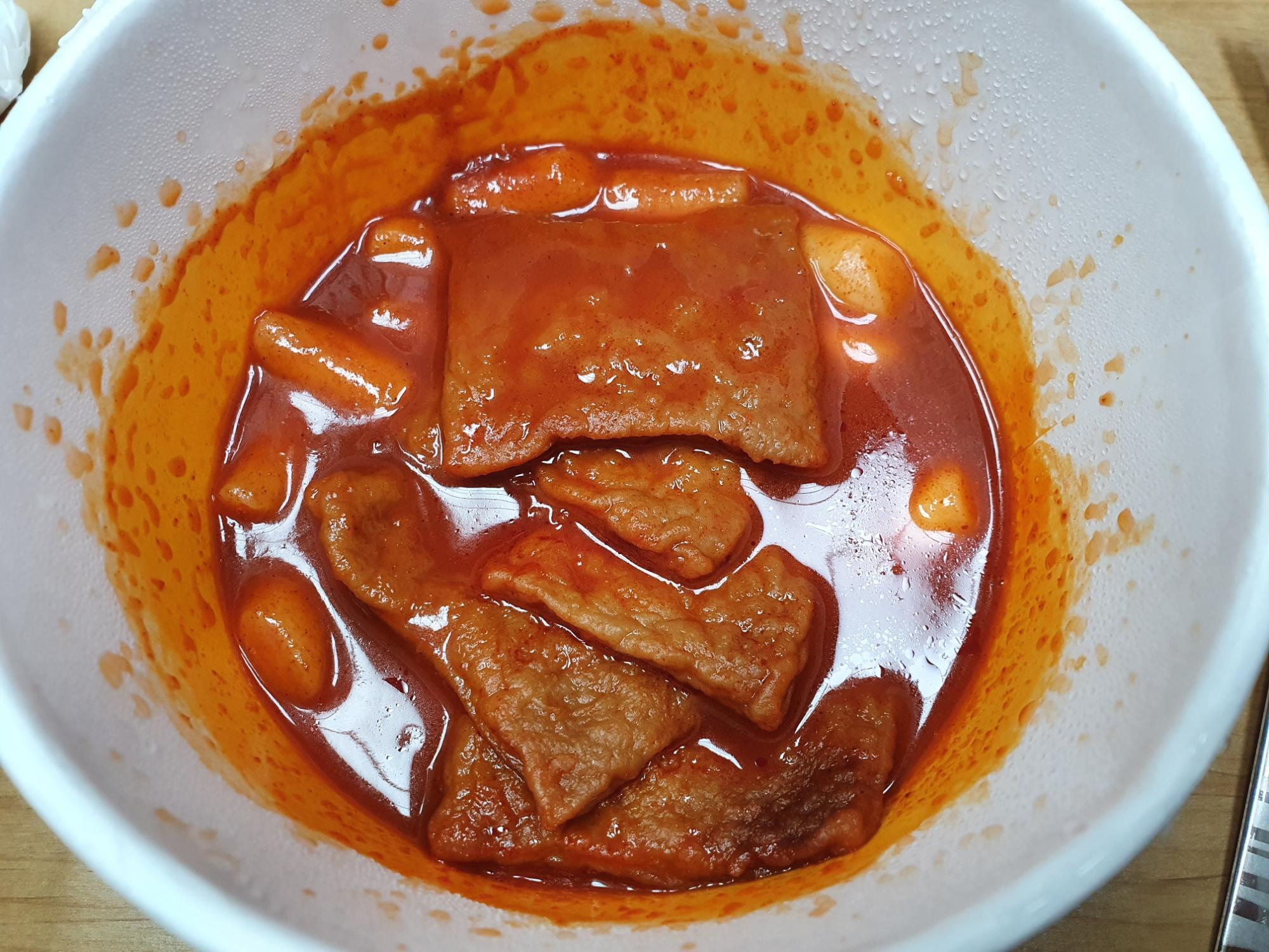 저는 모르고 떡볶이 뚜껑을 다 떼 버려서 그냥 위에 올려놓고 돌렸어요 ㅎㅎ