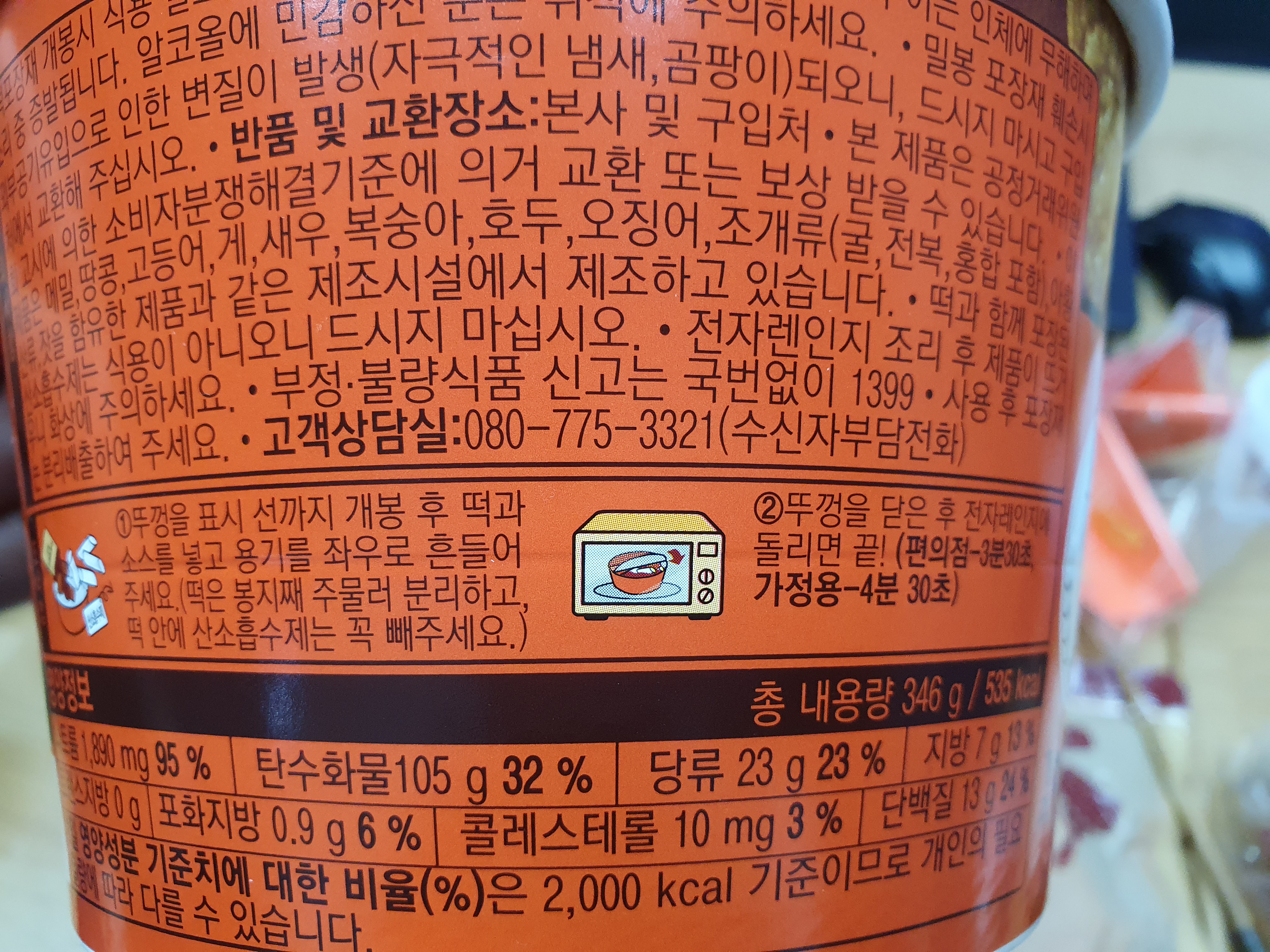 제품의 칼로리는 535Kcal에 나트륨은 1,890mg으로 하루 권장량의 95프로입니다.