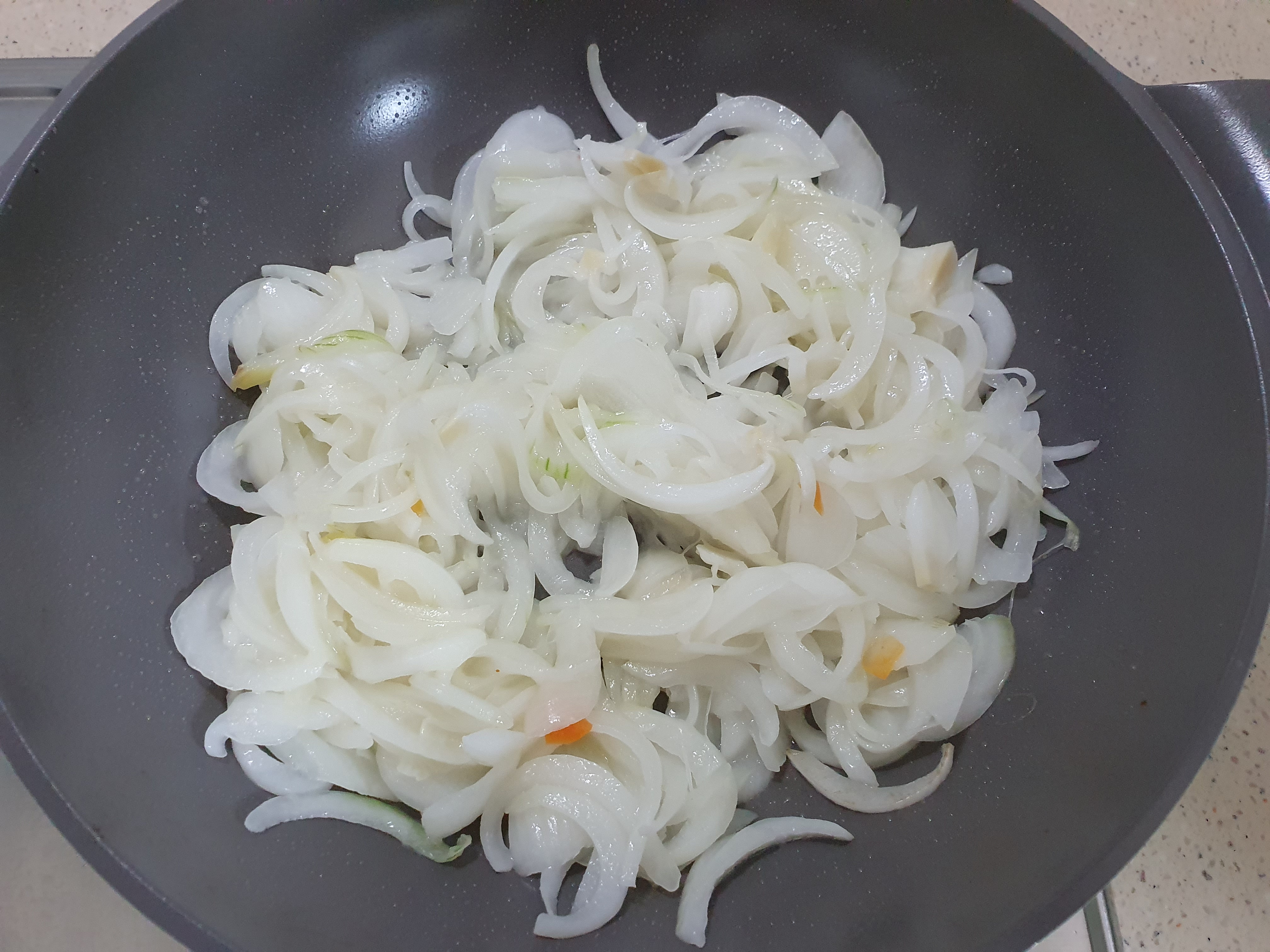 원래 백종원 레시피는 양파를 굉장히 오래 볶아서 갈색으로 변할 때까지 하는 건데,