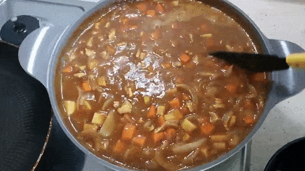 그리고 바로 숙성 카레 고형 8인분을 같이 넣어줬어요.