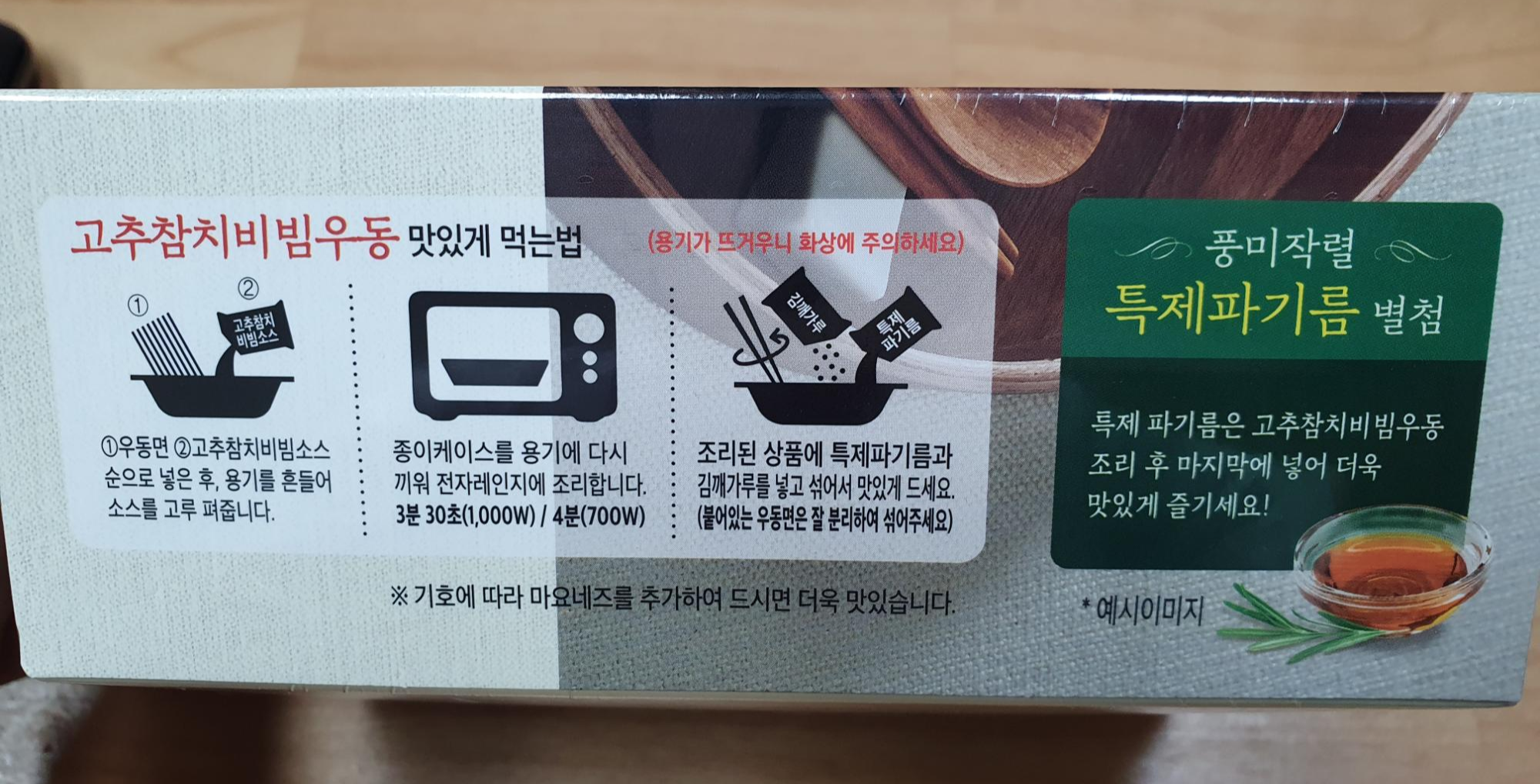 3. 조리된 상품에 특제 파기름과 김깨가루를 넣고 섞어서 드시면 돼요~