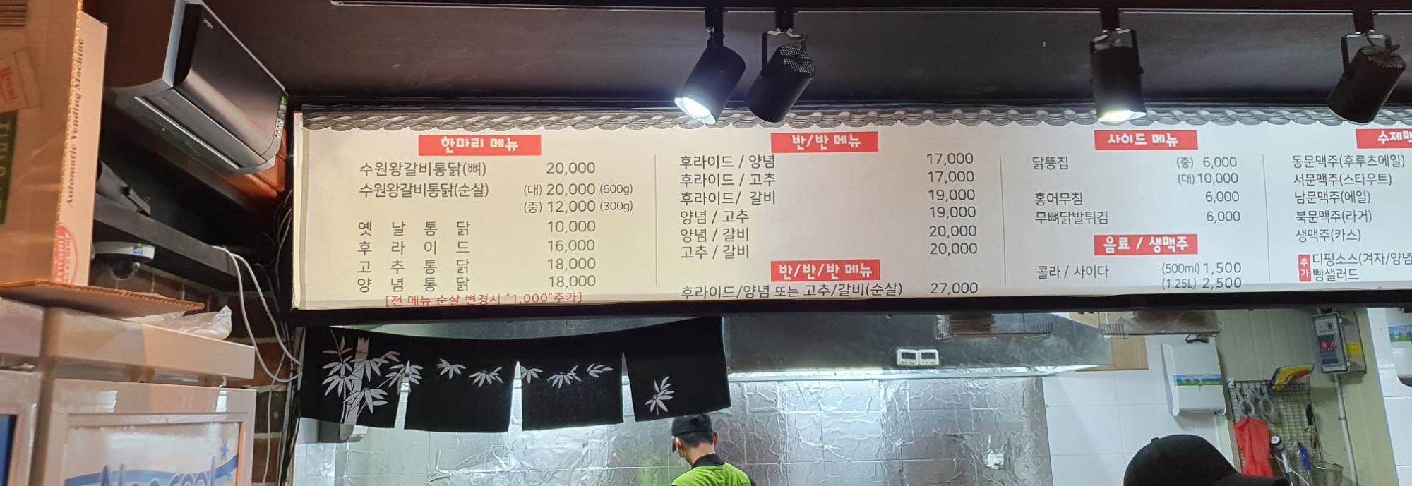 남문통닭의 수원왕갈비통닭 메뉴입니다.