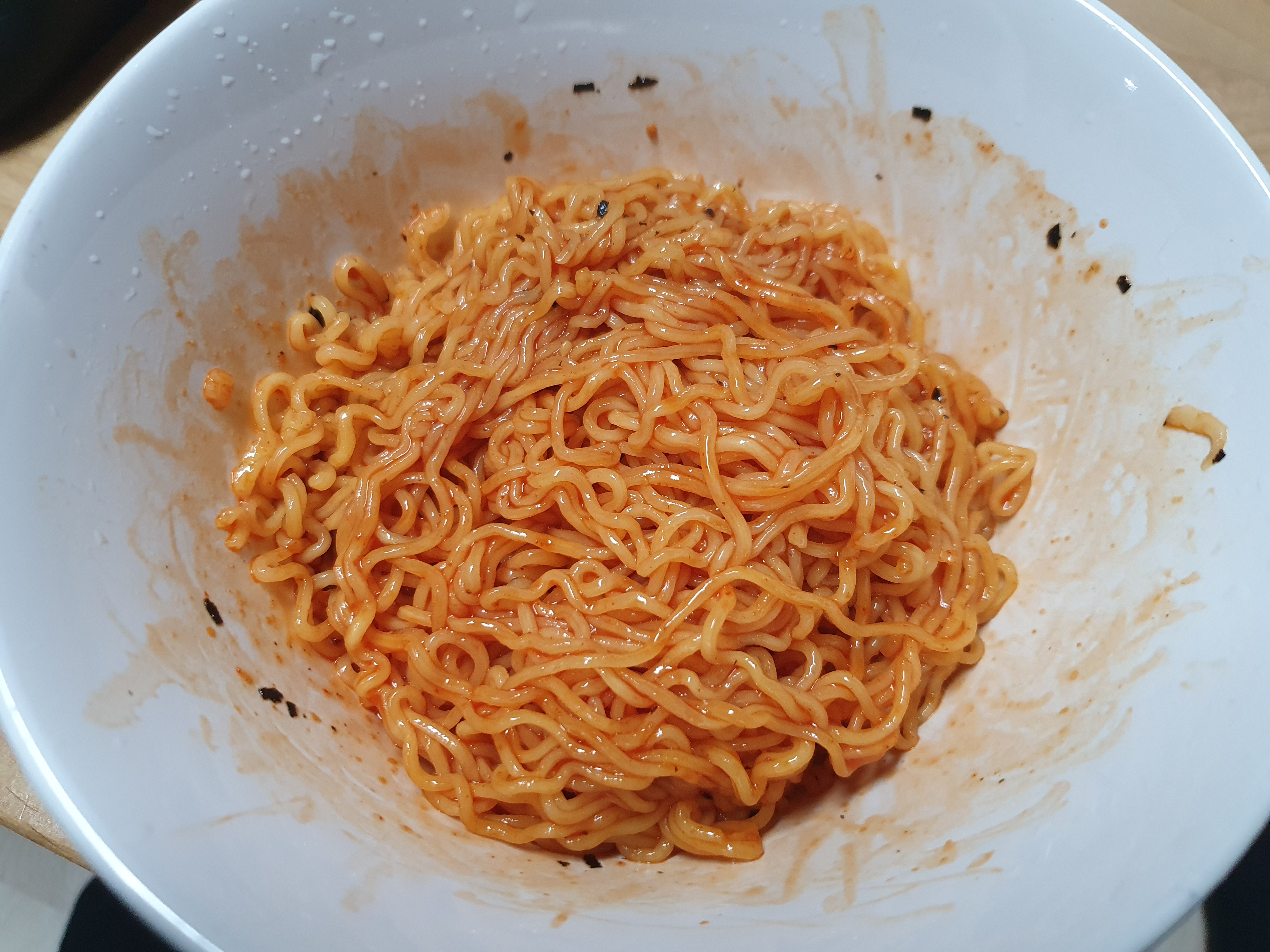 매운 정도는 팔도비빔면보다는 약간 더 맵고, 네넴띤보다는 덜 매운 딱 적당한 매운맛인 것 같습니다.