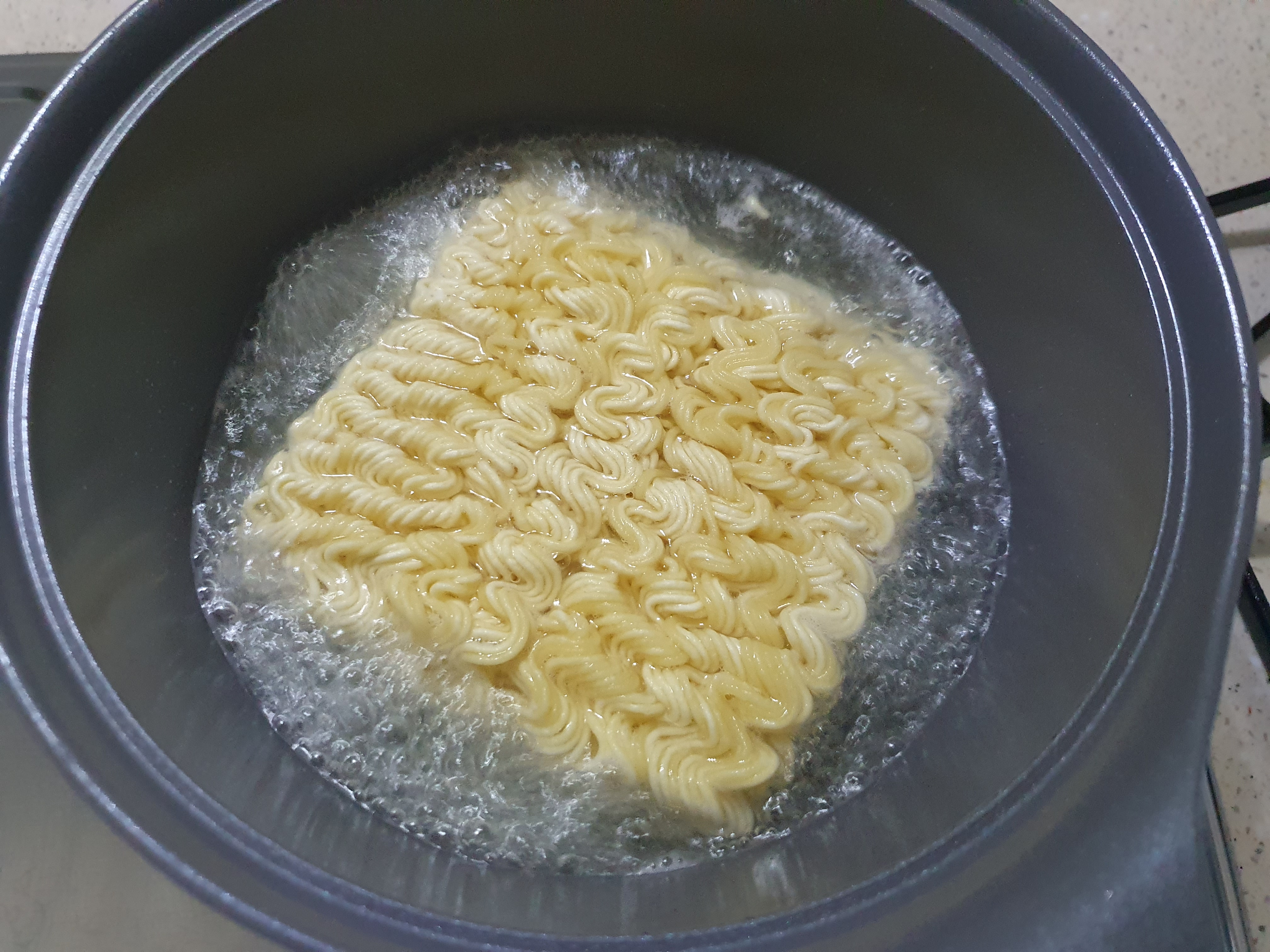 끓는 물에 면을 넣고 3분 30초간 더 끓여줍니다.