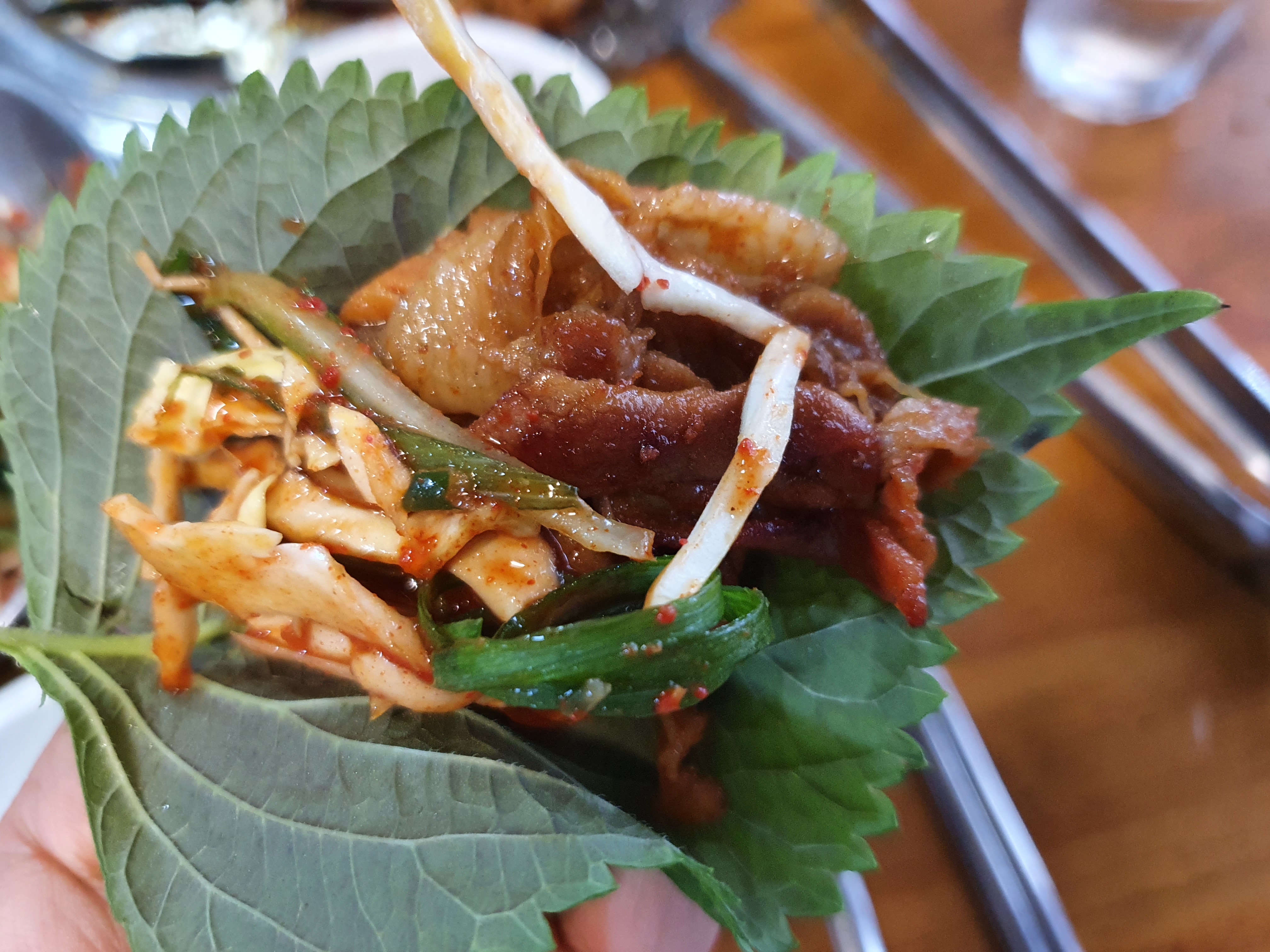 깻잎에 싸서 먹기도 했어요.