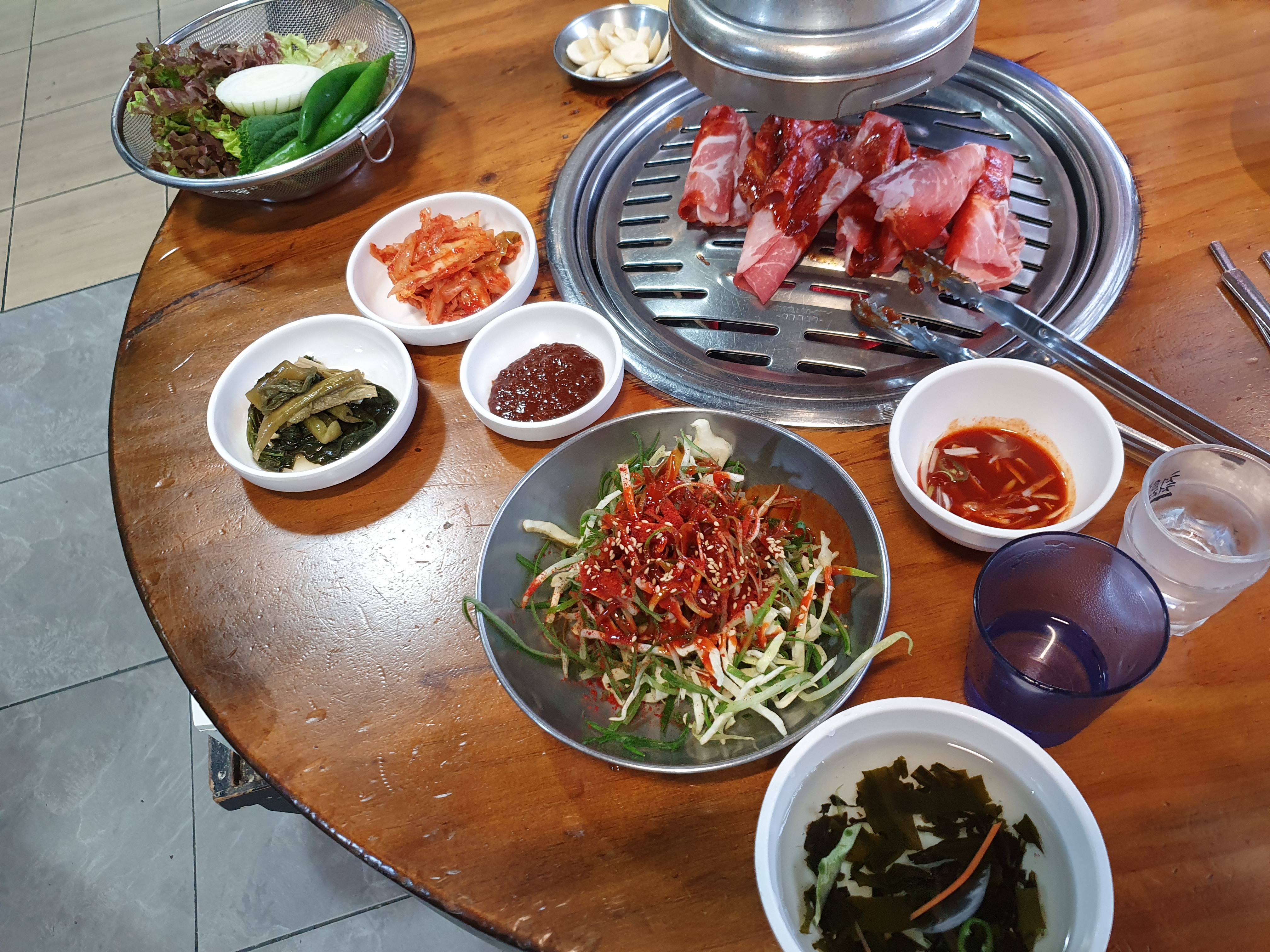 열탄불고기와 껍데기 그리고 김치말이국수예요.