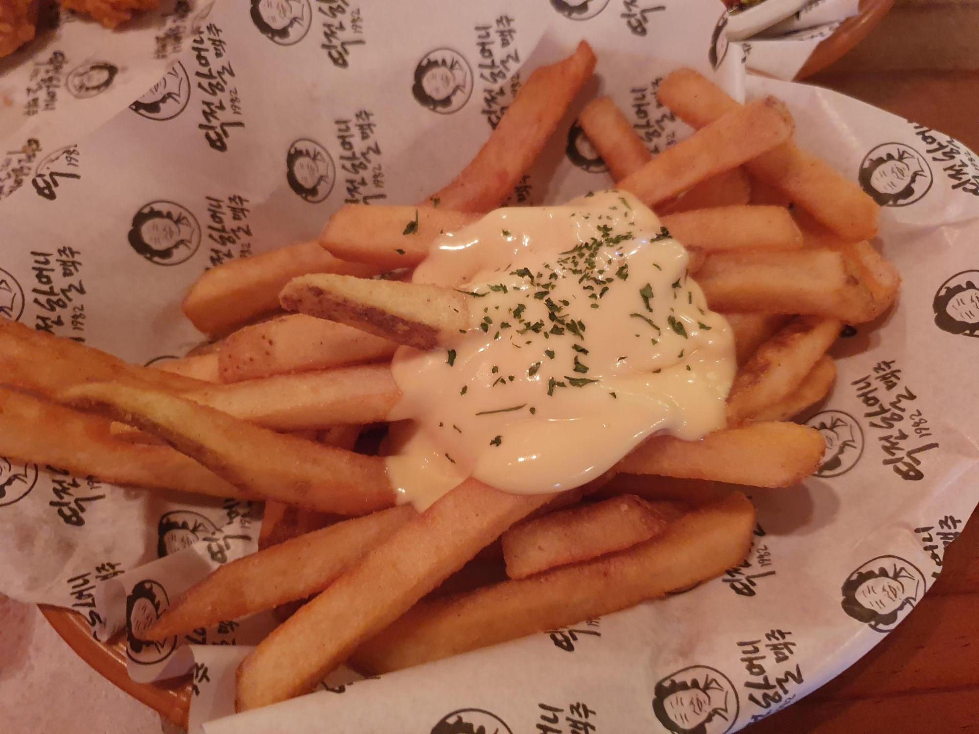 갈릭빠다 포테이토는 달달한 허니갈릭버터 소스가 올라간 포테이토 튀김이에요~