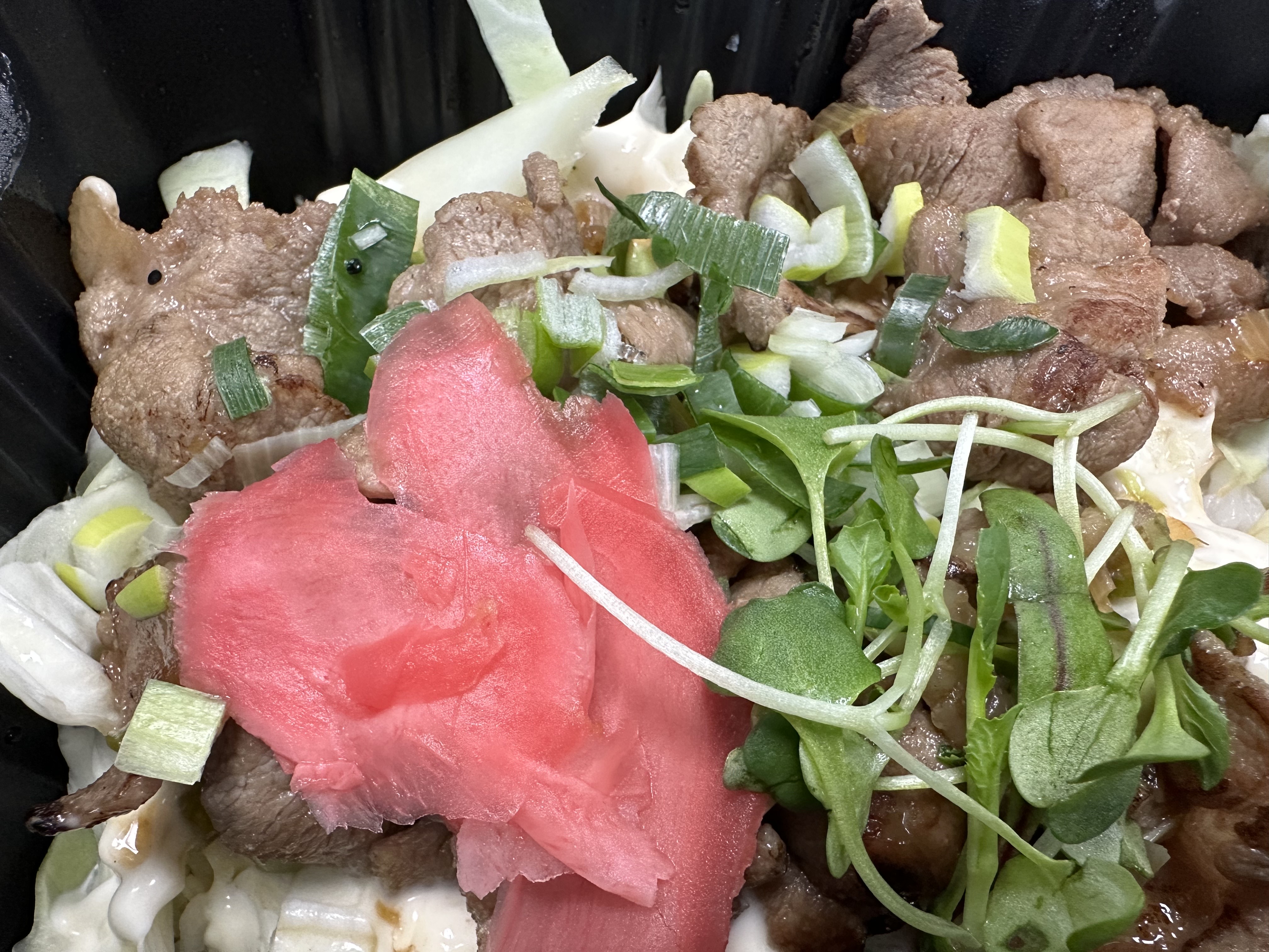 치킨 마요 덮밥에 치킨 대신 돼지고기와 생강이 들어 있다고 생각하시면 될것 같습니다.