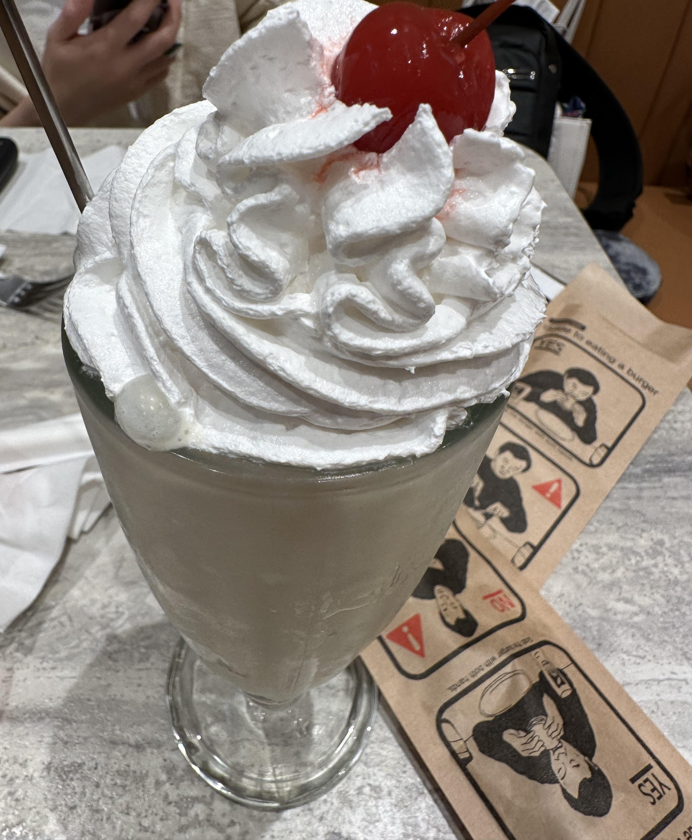 밀크쉐이크에 생크림이 올라가서, 부드럽고 맛있긴 했는데요