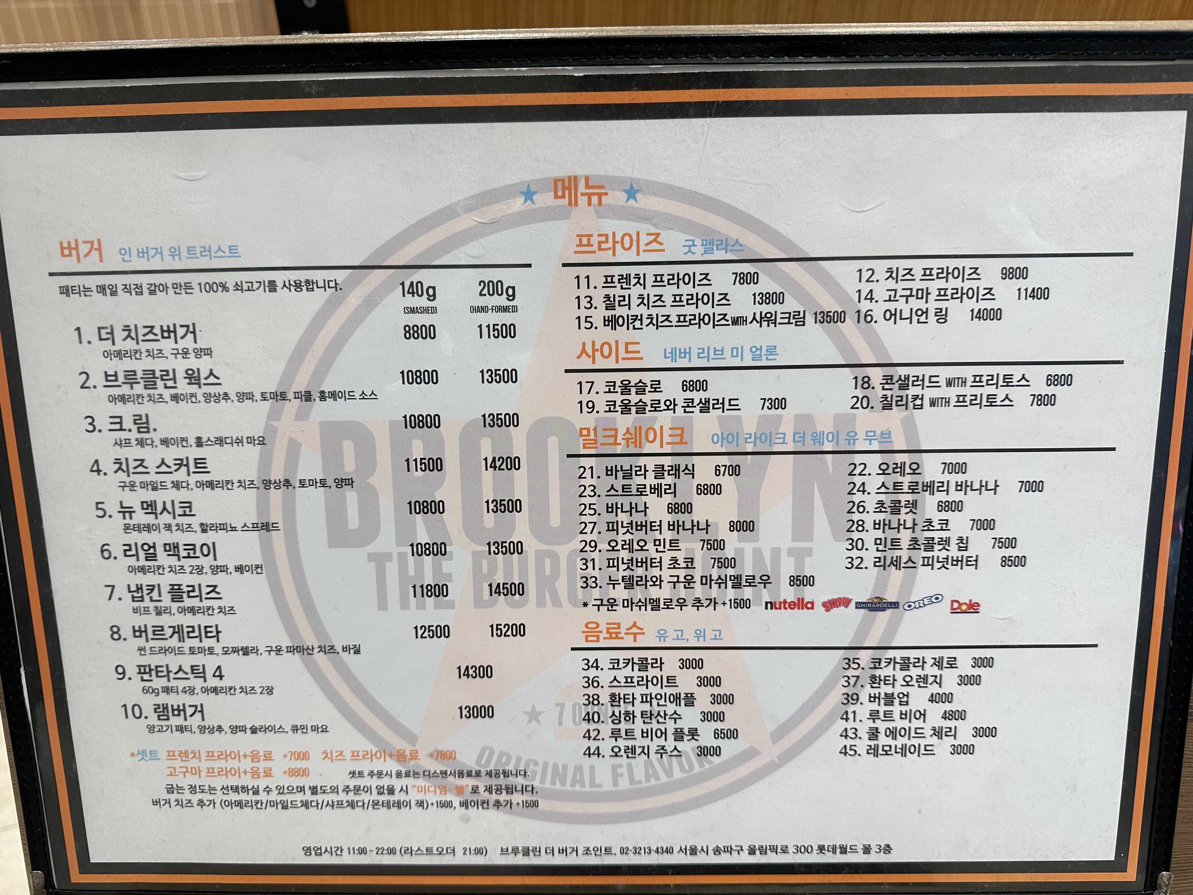 오늘은 롯데월드몰 내에 위치한 미국스타일 수제버거전문점인 브루클린더버거조인트를 소개하려고 합니다.