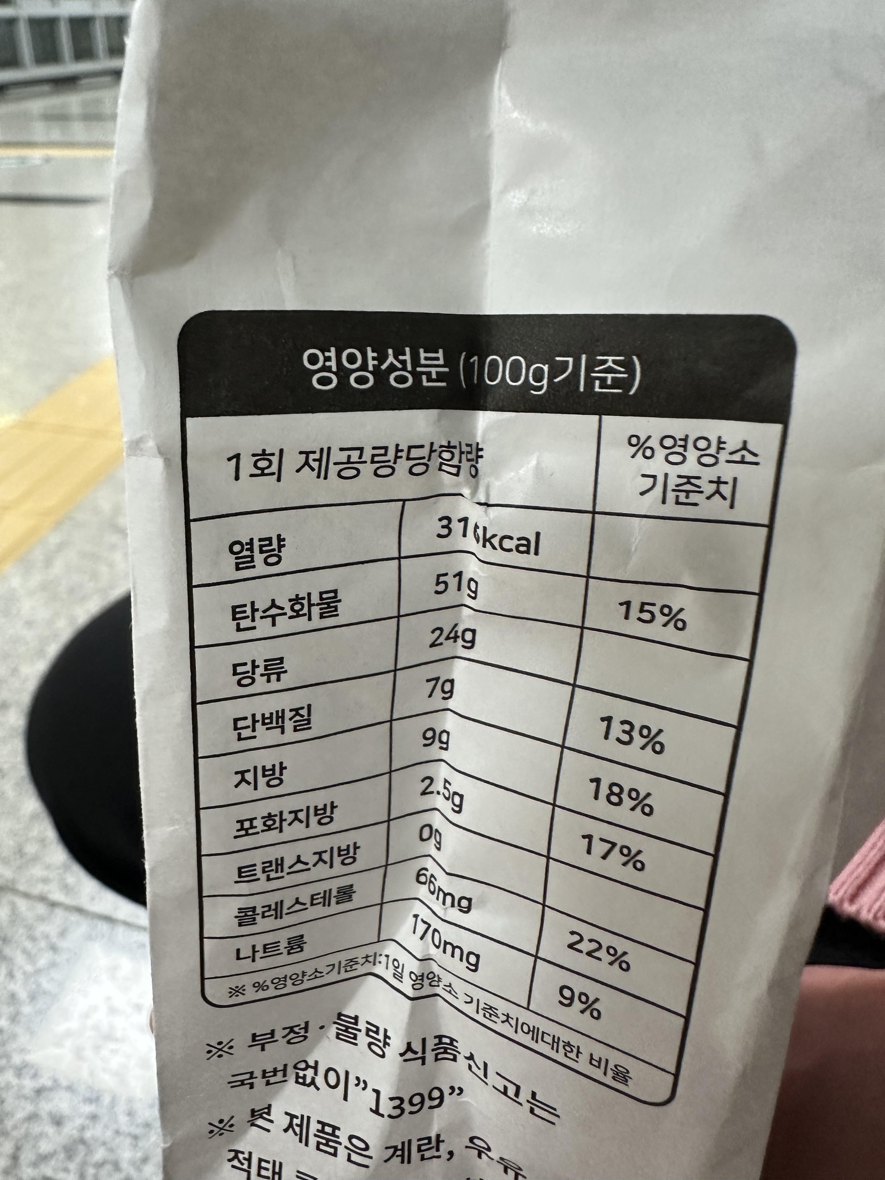 100g기준 영양성분 표입니다.