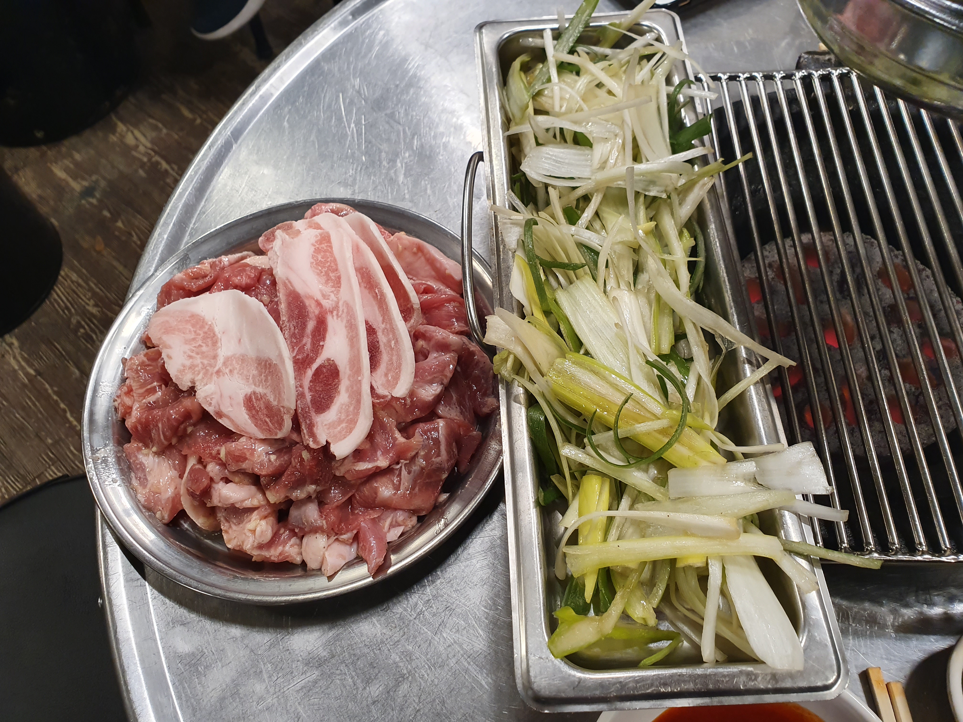 그래서 부담 없이 여러 종류의 돼지 부속 고기를 맛볼 수 있고요 모듬 한 접시도 만원입니다! ㅎㅎ