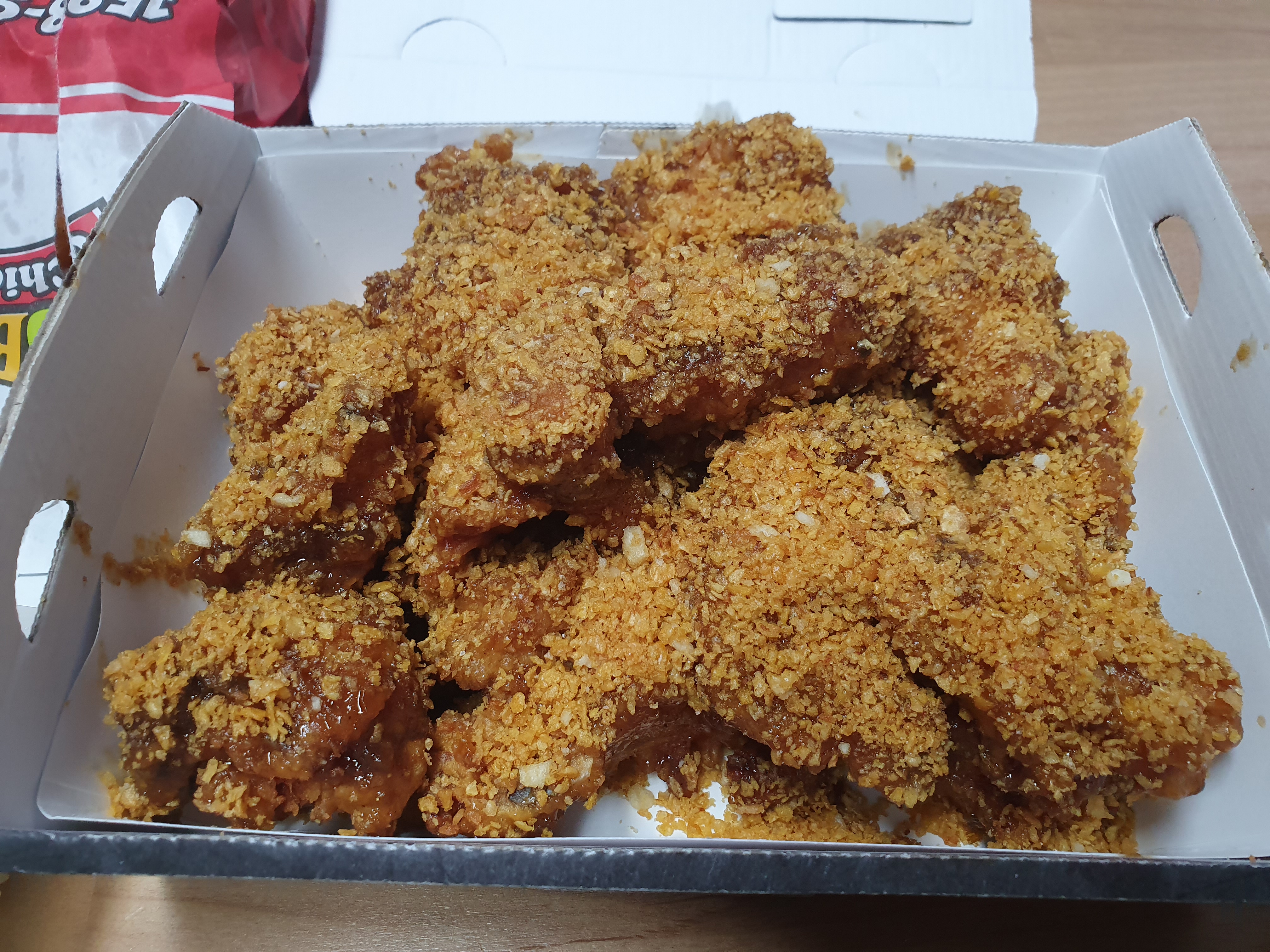 후레이크를 빼고 맛을 비교하자면 닭강정 맛이랑 많이 비슷한 것 같습니다.