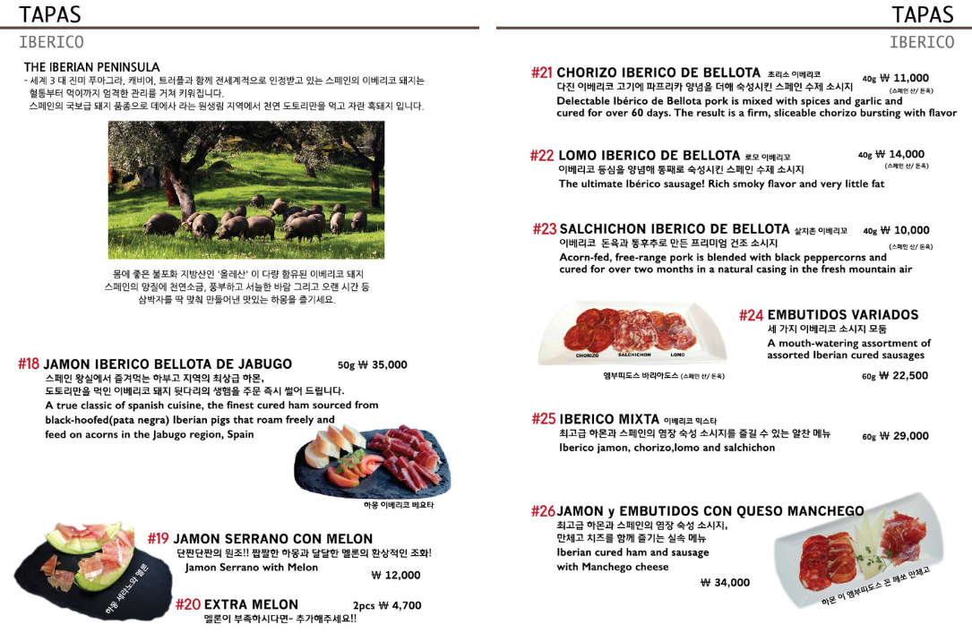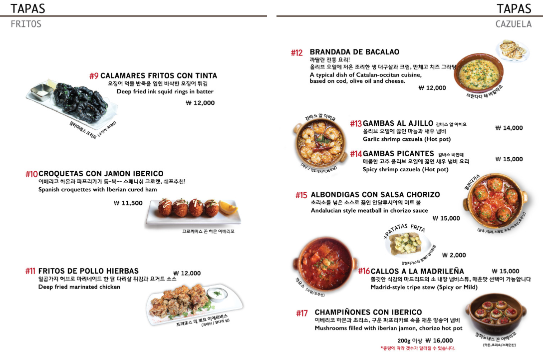 메뉴의 종류는 엄청나게 많은데요, 타파스(와인에 간단히 곁들여 먹는),
