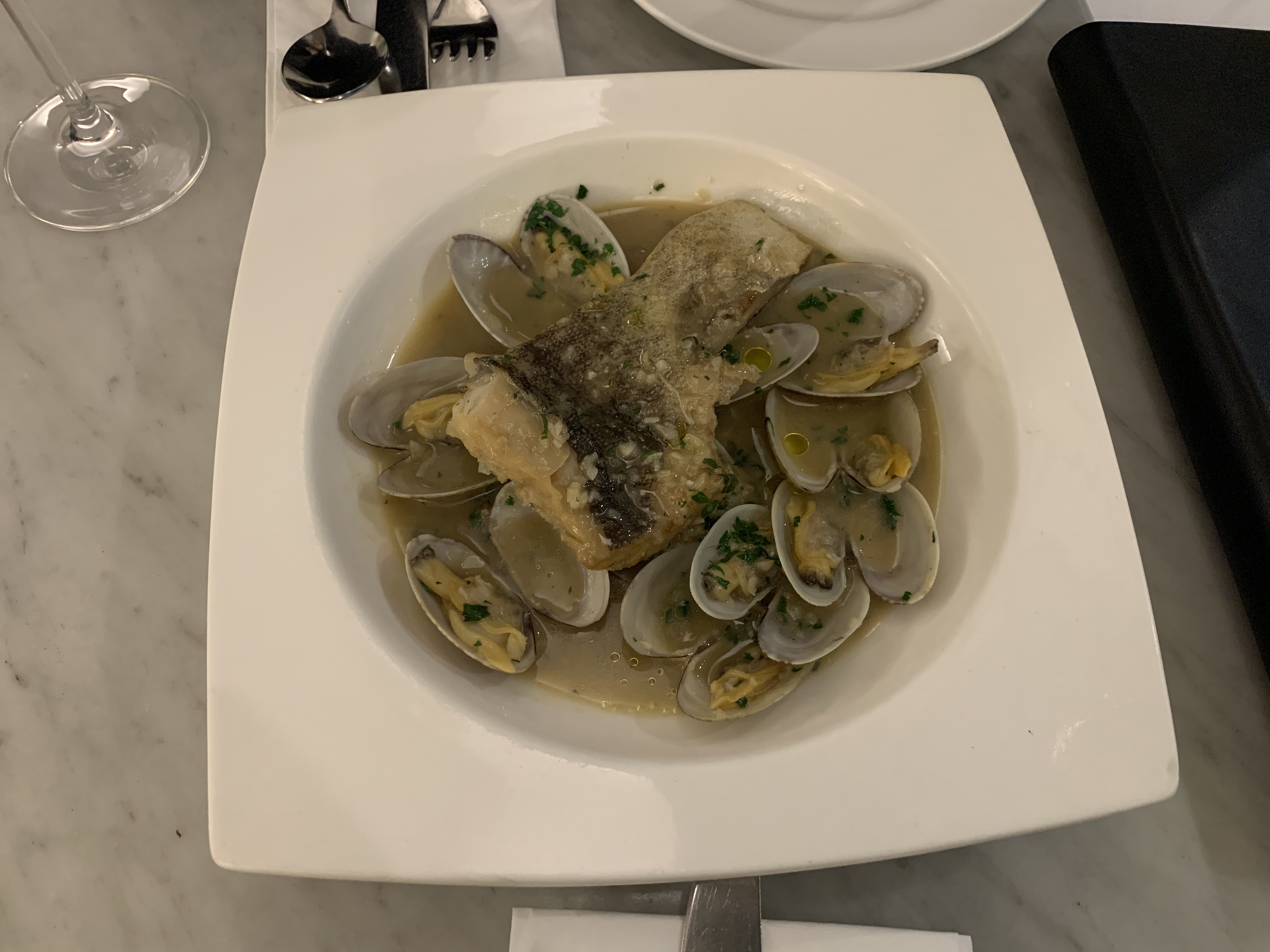 바지락과 그 위에 생대구 살을 얹은 요리인데요.