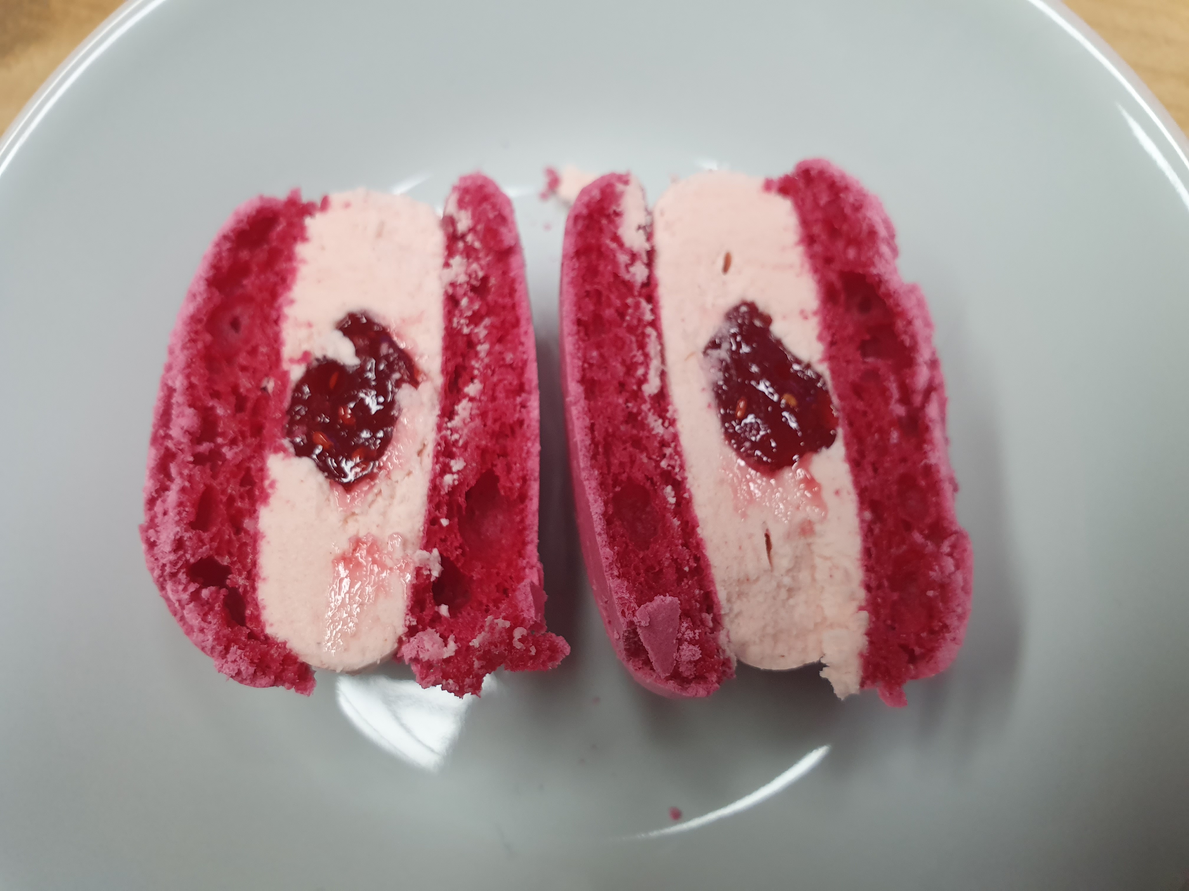 아래는 딸기 마카롱 단면이에요.