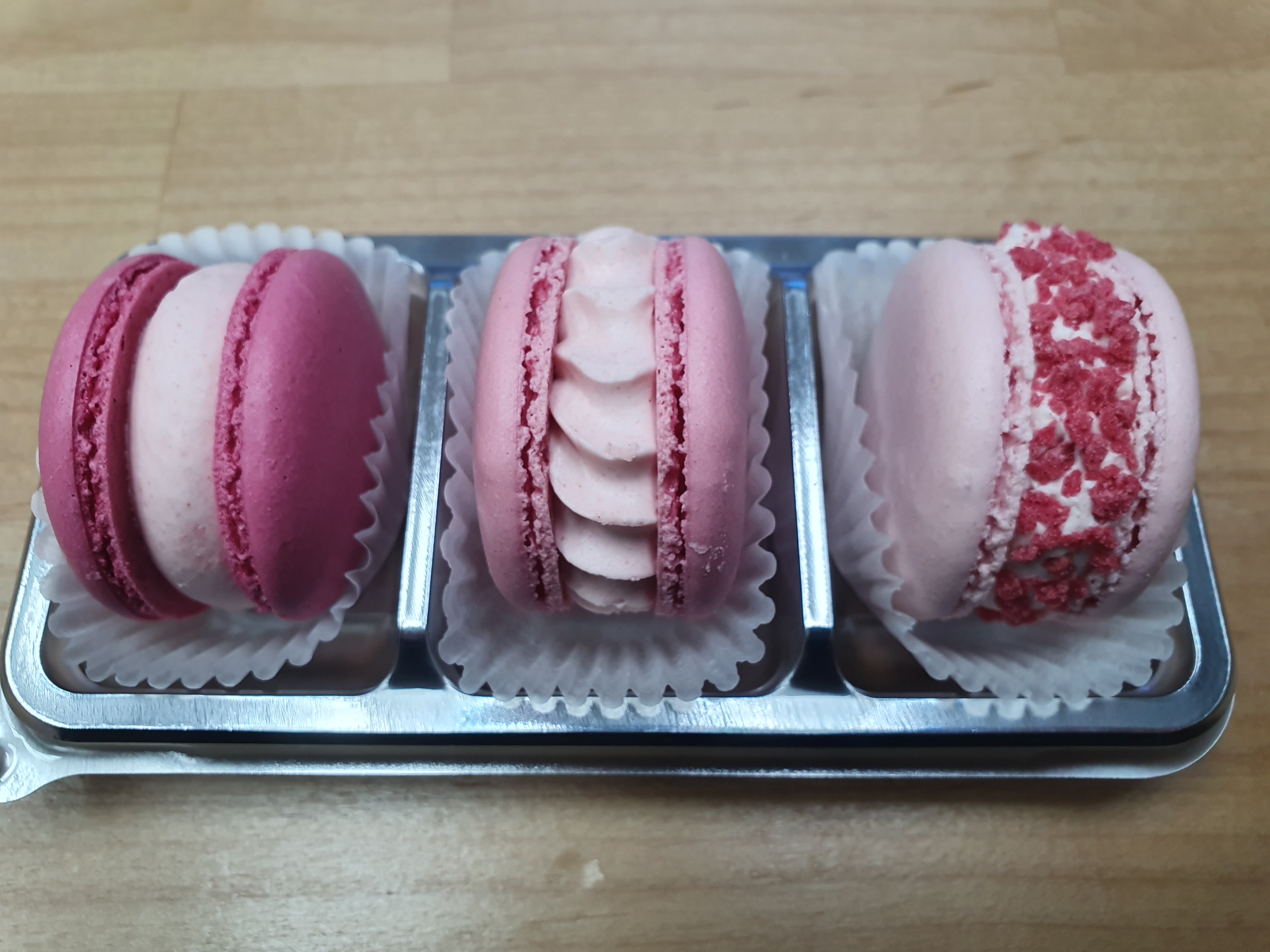 쫀득한 딸기 마카롱 (딸기맛 3종류) 을 사 와봤습니다.