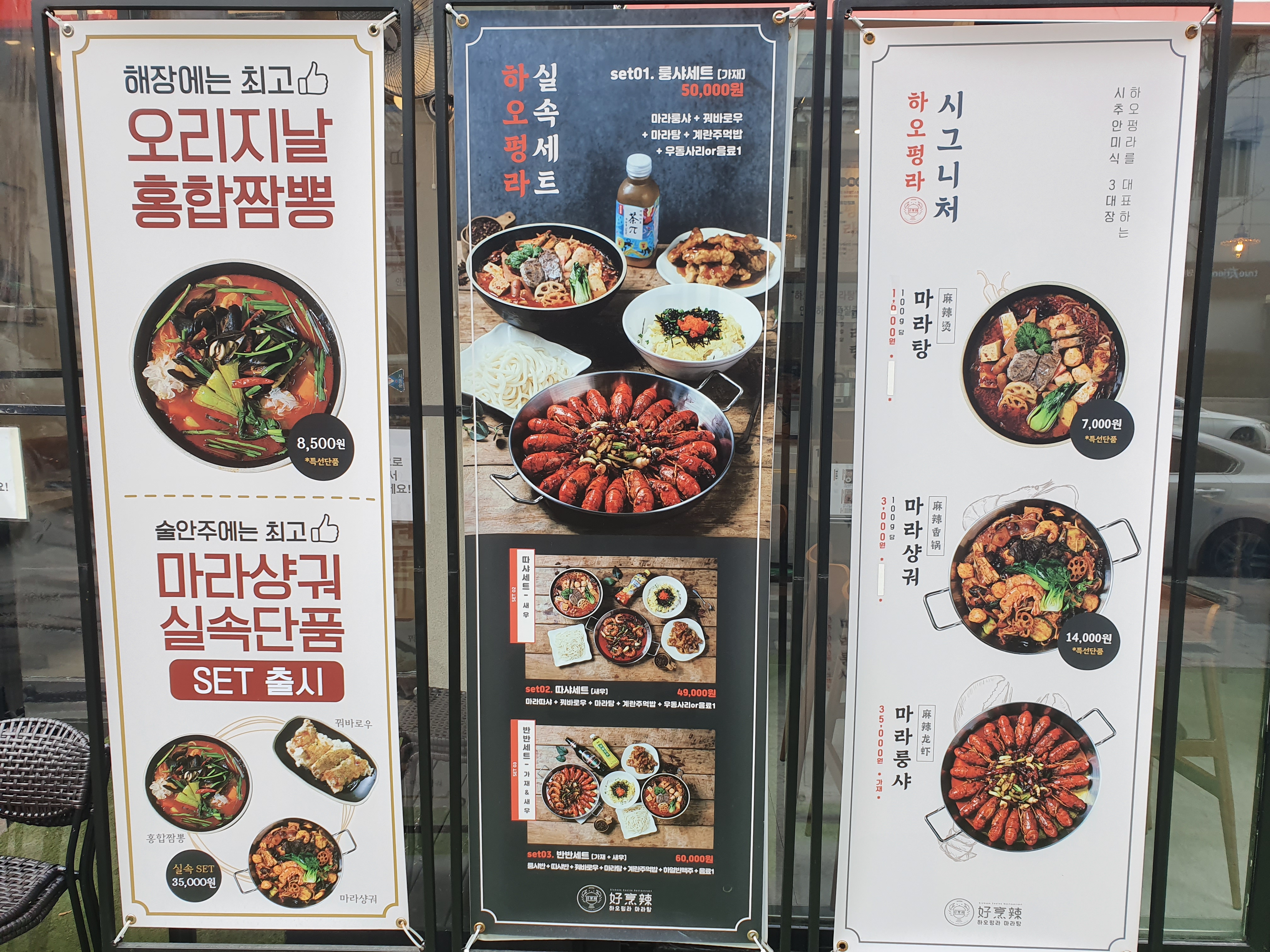 하오펑라의 시그니처 메뉴는 마라탕, 마라샹궈, 마라롱샤가 있습니다.