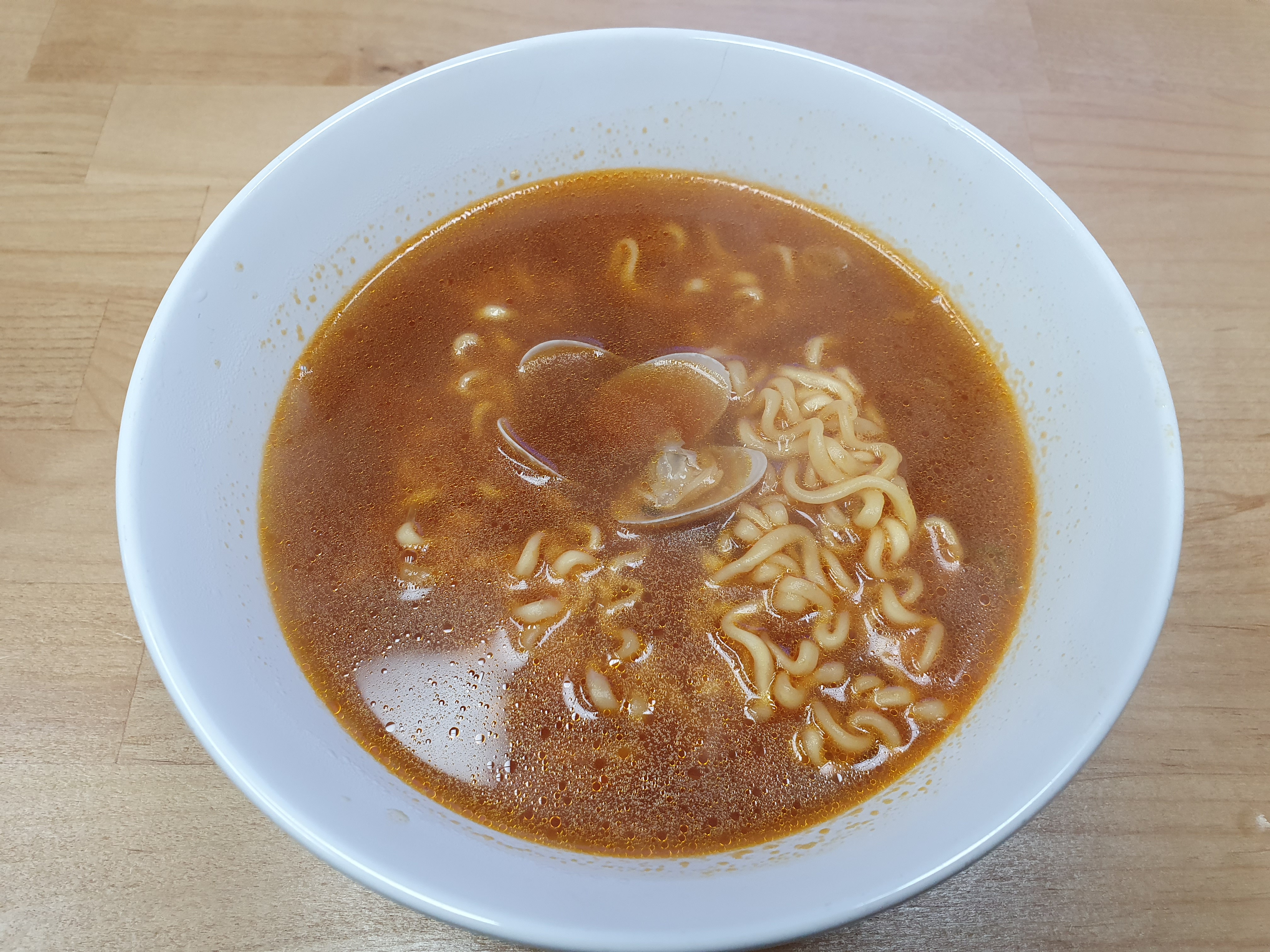 집에서 바지락술찜 해먹을 때는 하얗게 끓이는데 라면 맛을 조금 내기 위해서 그런 건지 스프맛도 약간 나네요.