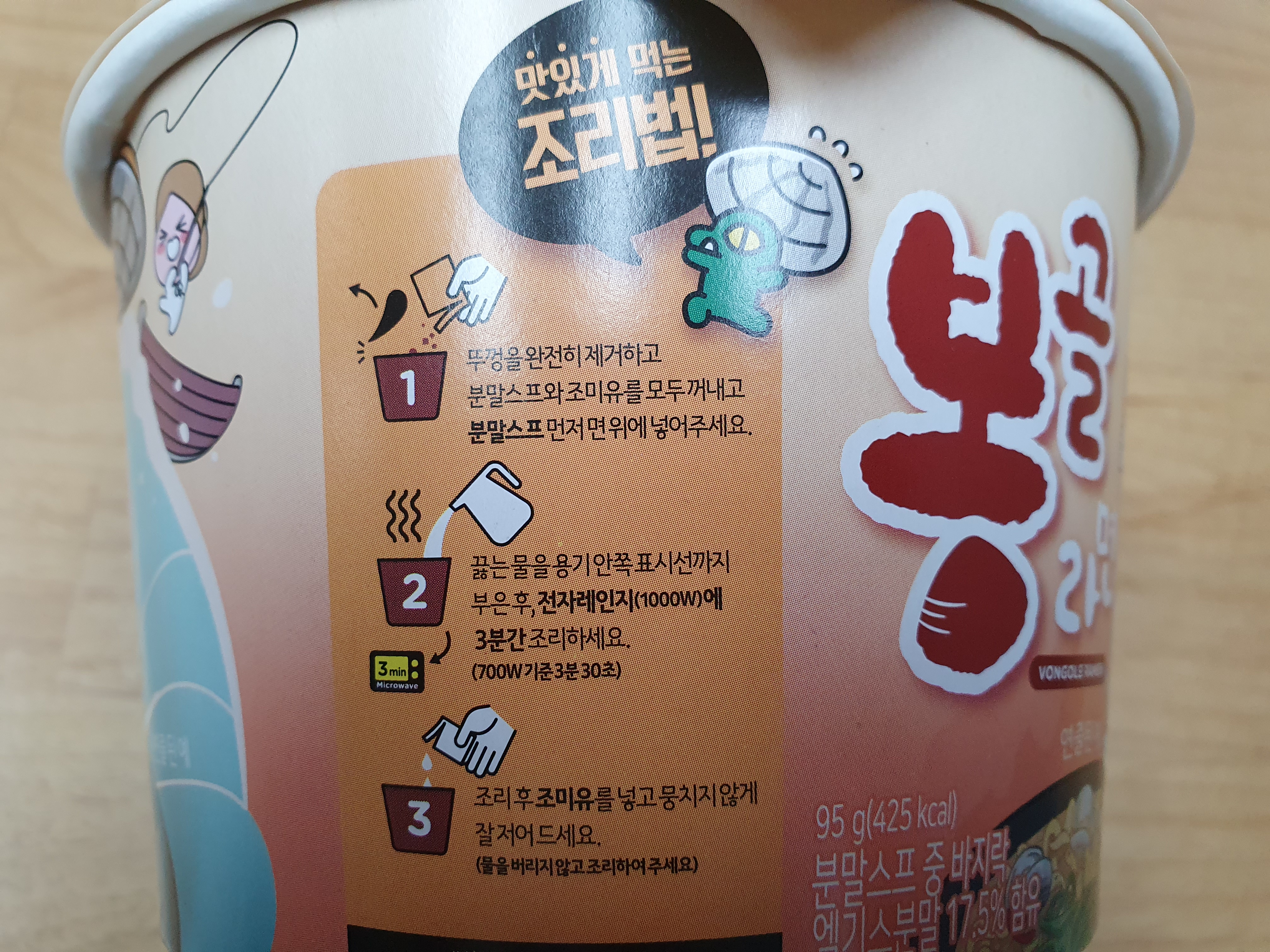 조리법은 일반 컵라면과는 다르게 전자레인지가 필요합니다.