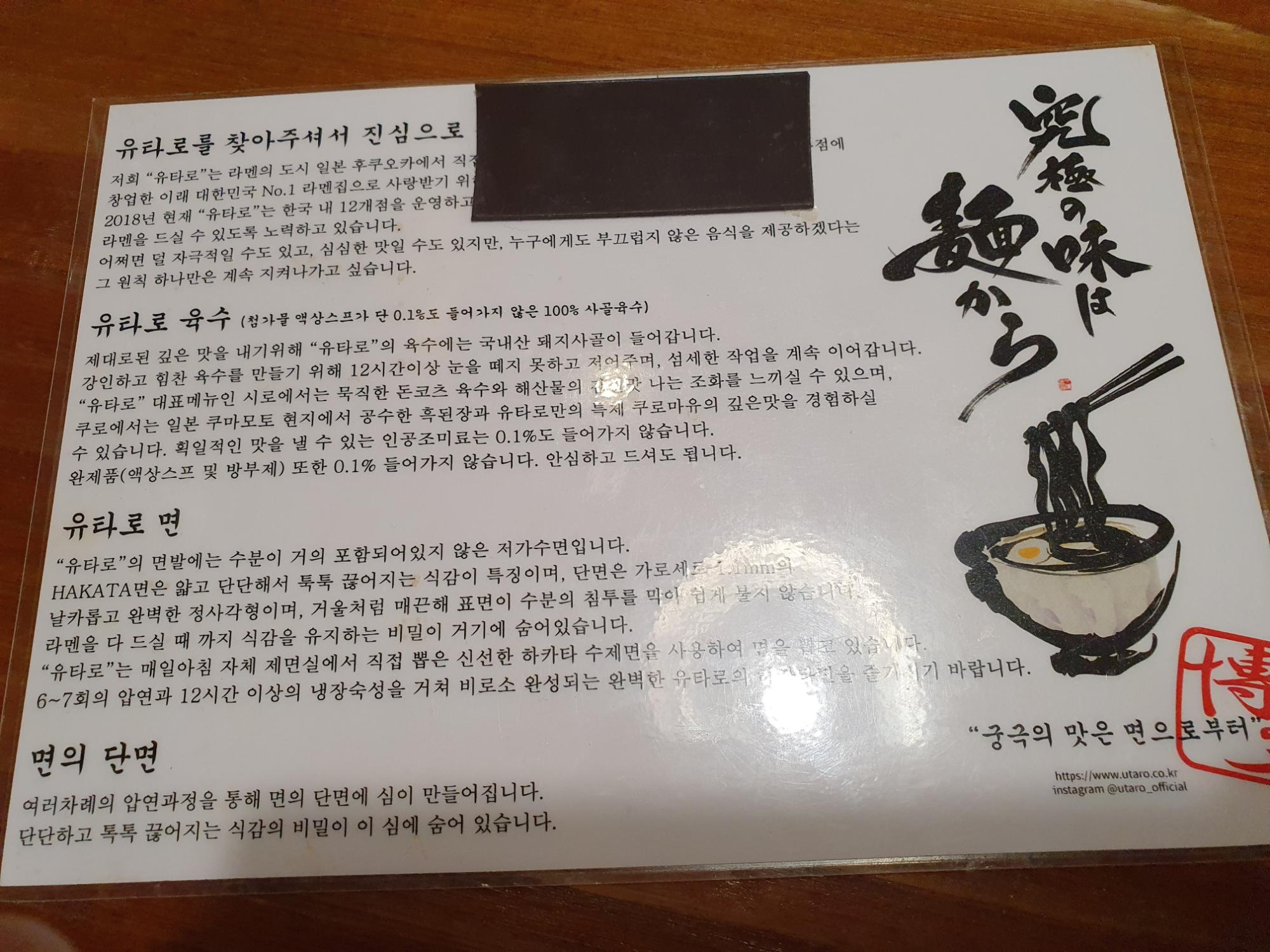 메뉴판 뒷면에 유타로 소개가 적혀있습니다.