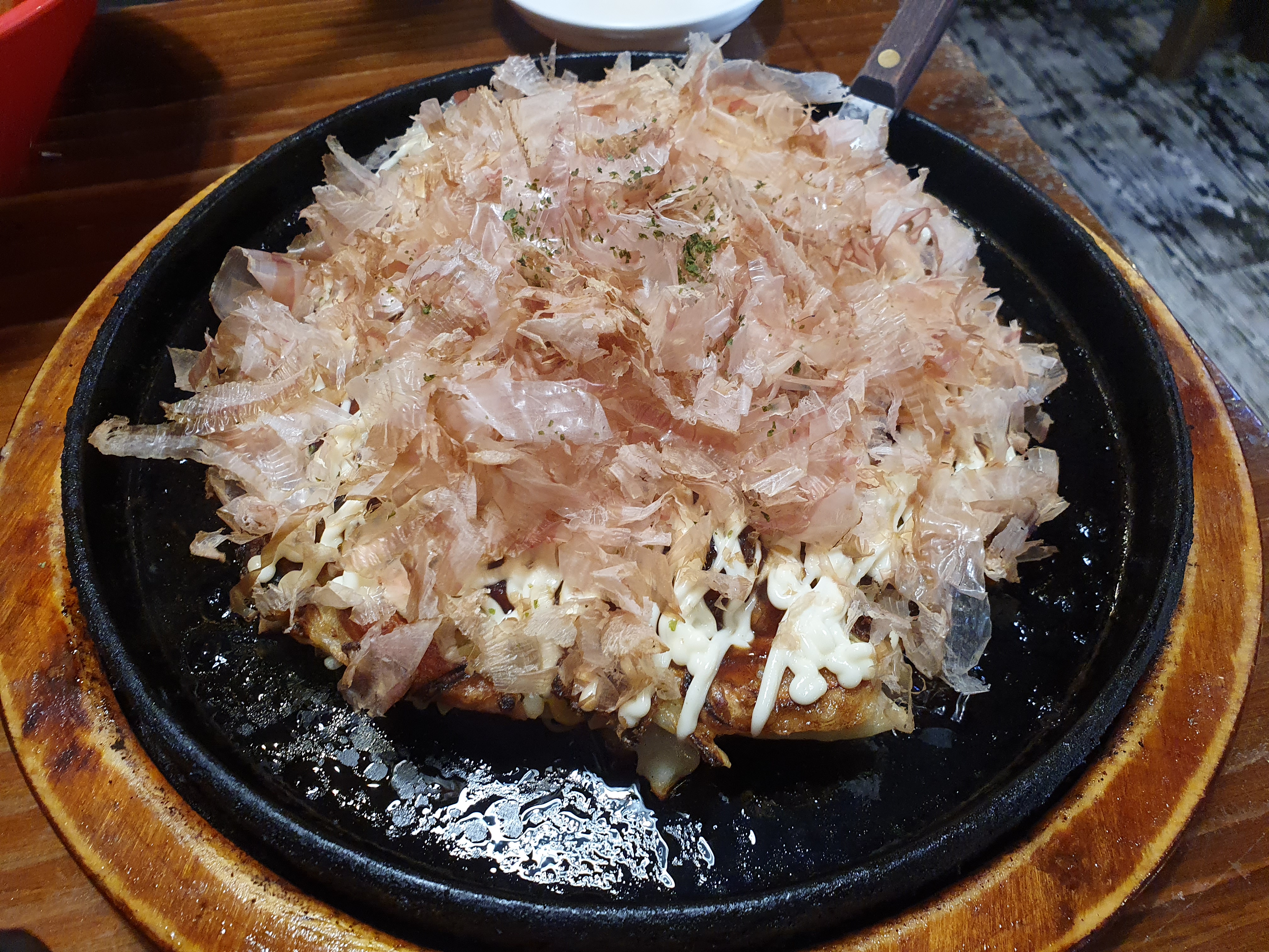 오꼬노미야끼 가격이 14,000원입니다. 주문할 때 조금 비싸다 싶었는데 양이 꽤 되네요.