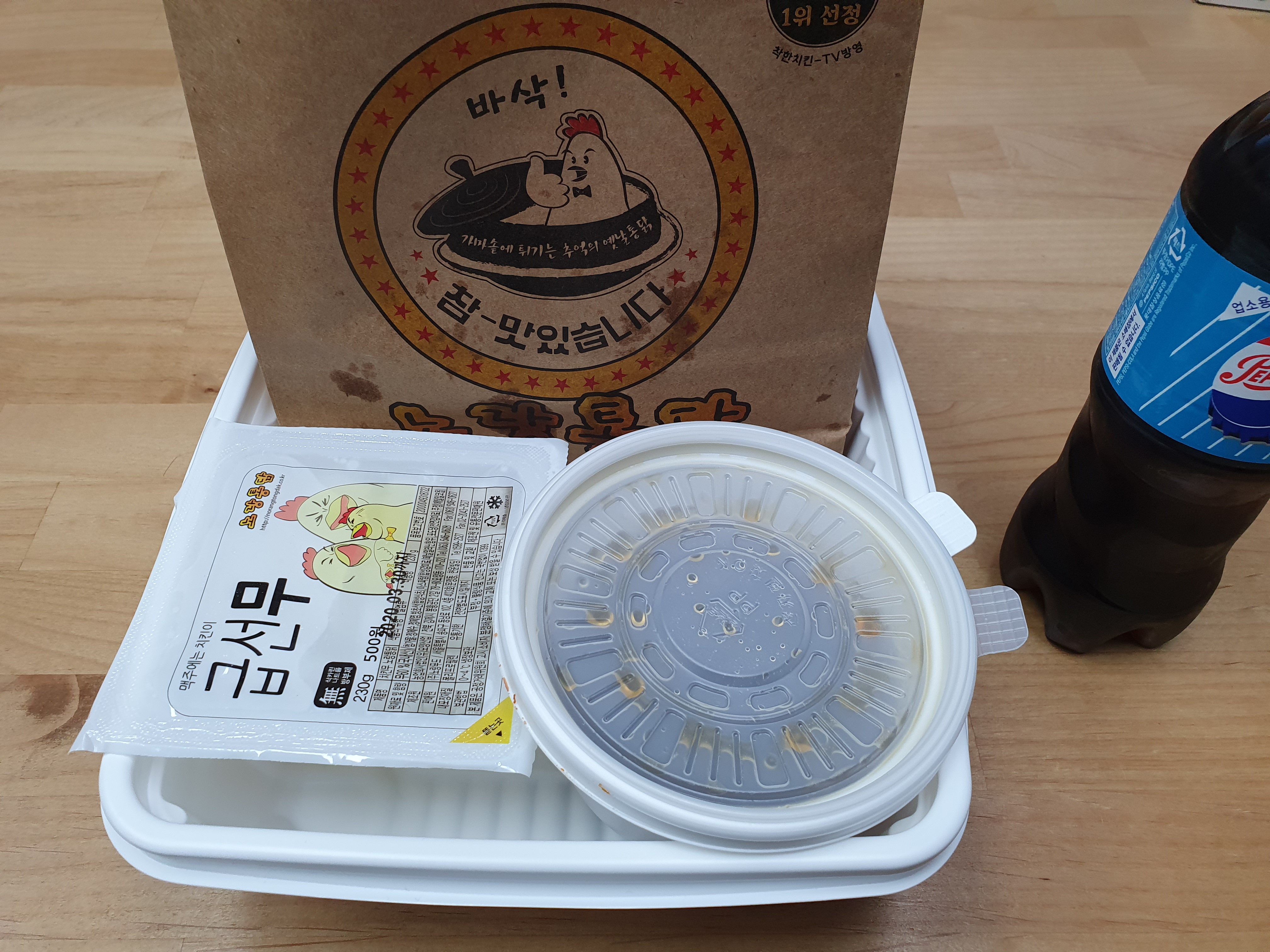 주변에 배달가능한 노랑통닭이 없어서 직접 가서 사 왔어요 ㅎㅎ