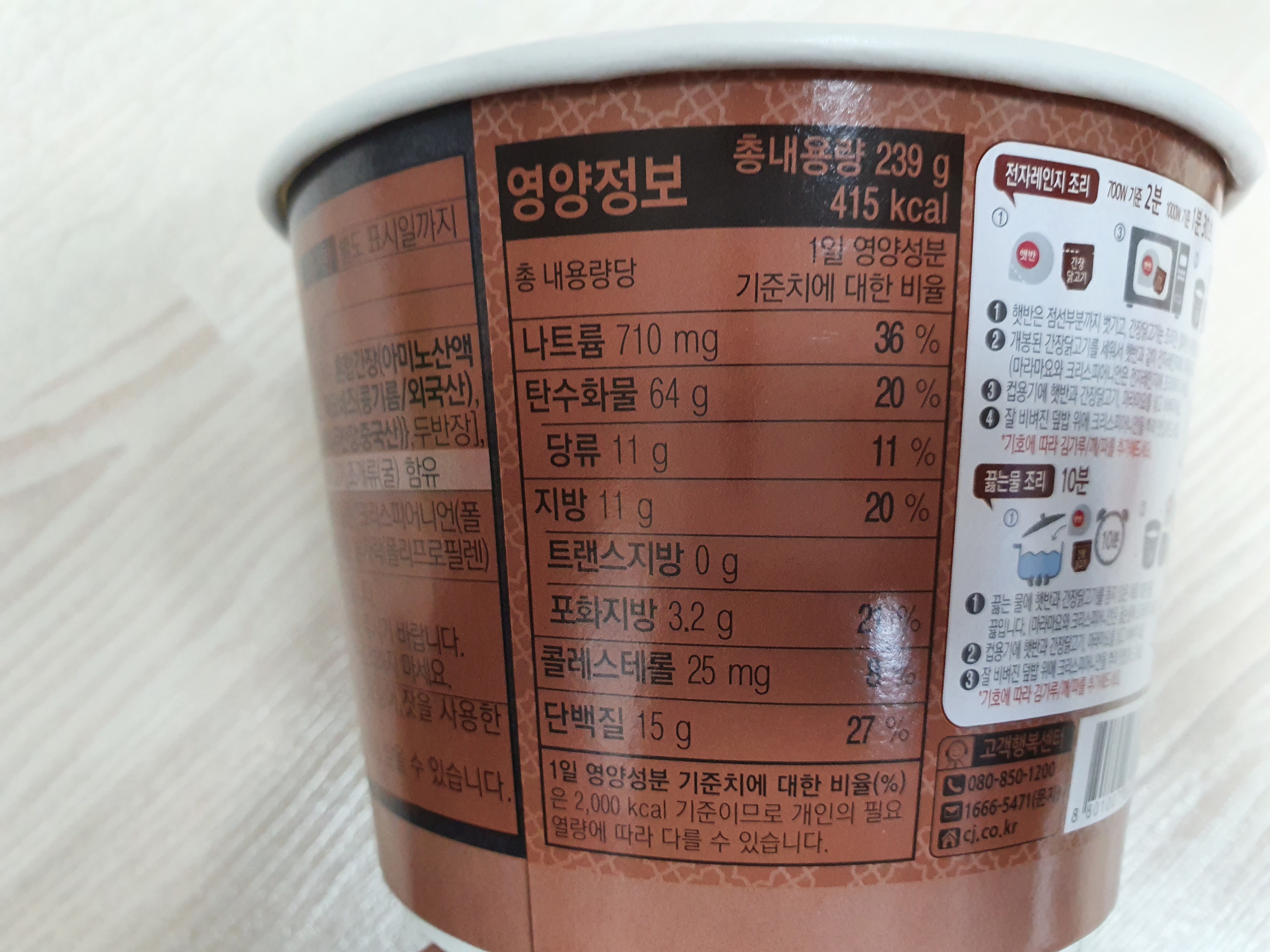 칼로리는 415Kcal 이고, 나트륨은 710mg 이네요.