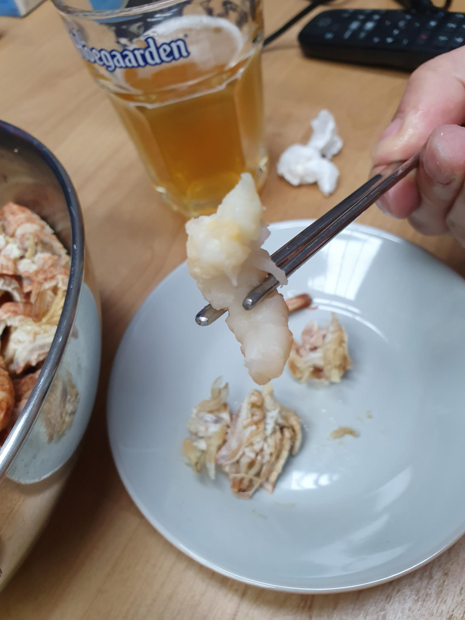 맥주와 함께 다 먹고 나서 곰새우의 껍데기만 남았네요 ㅠㅠ