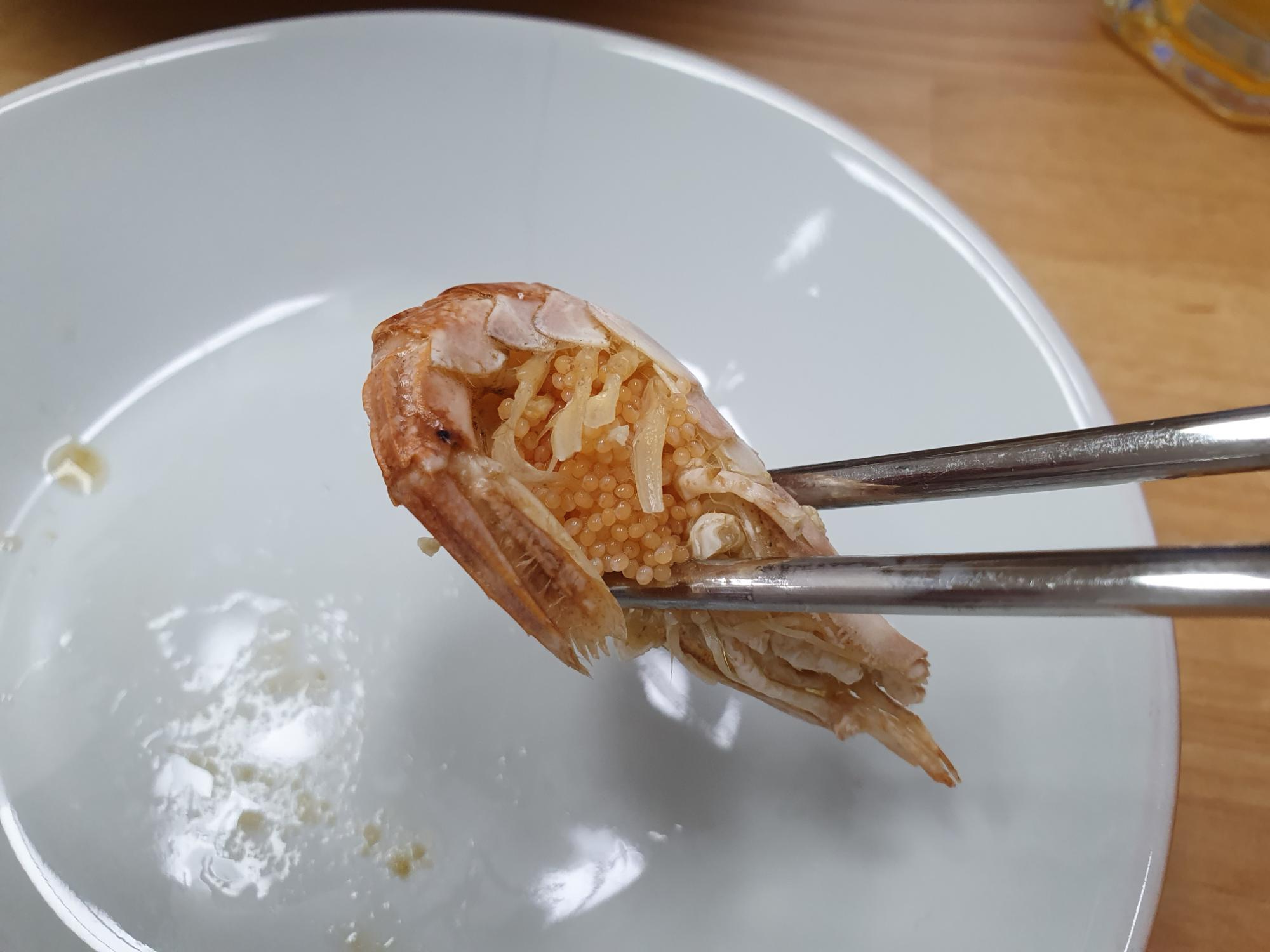 그때 먹으면서 중간중간 비린내가 심한 새우가 있어서,